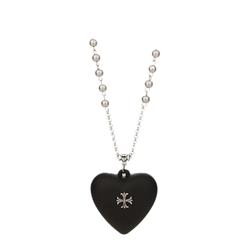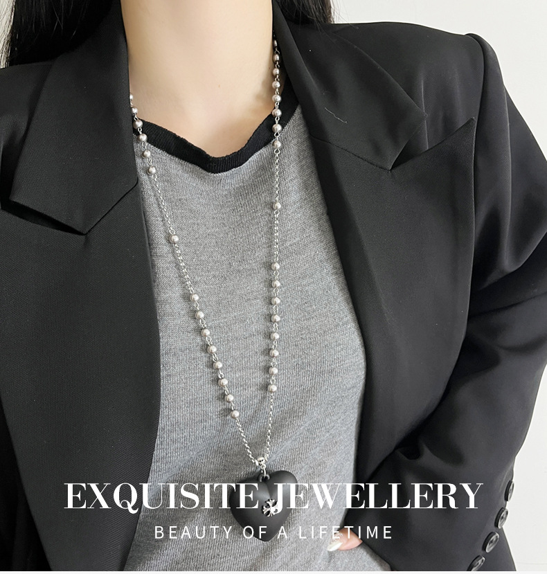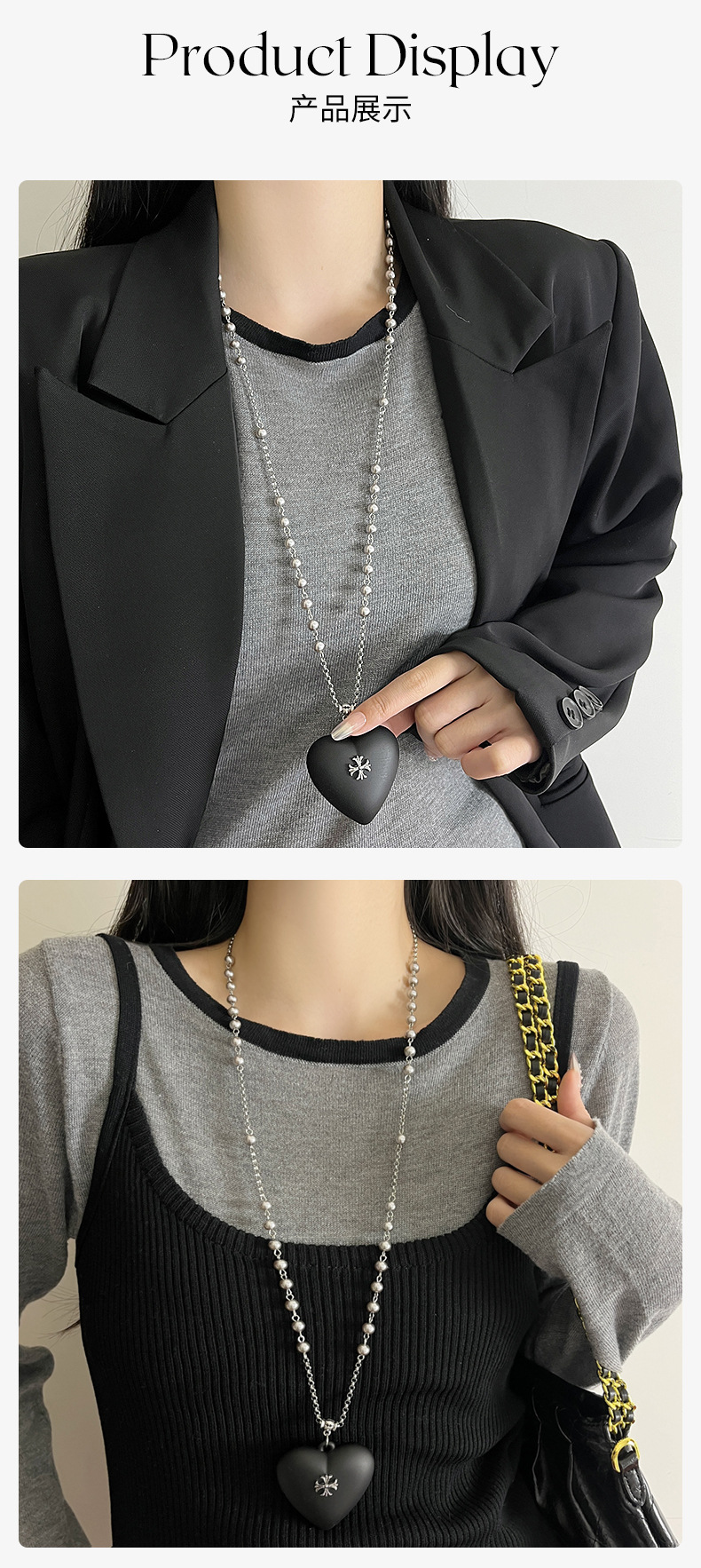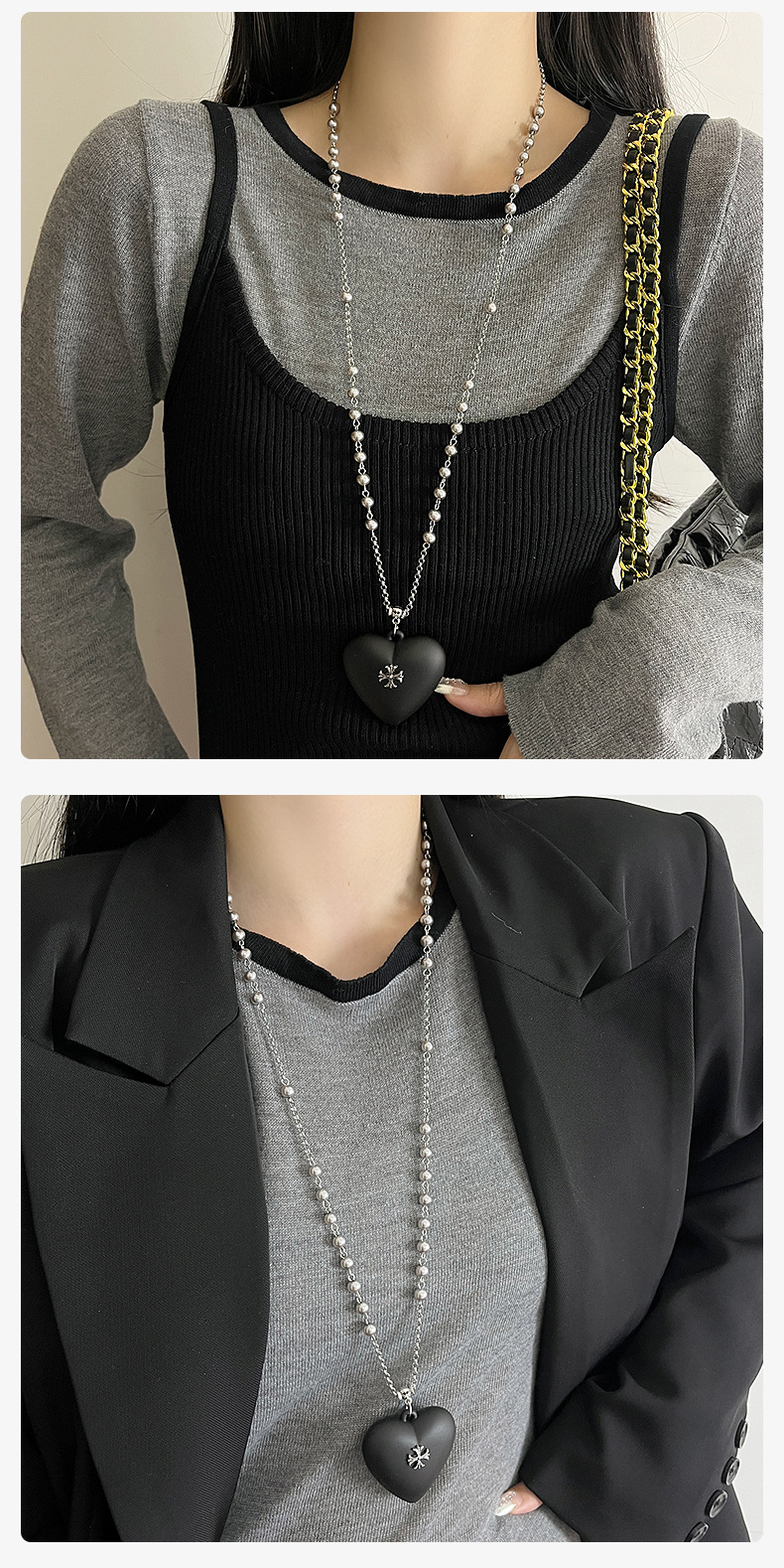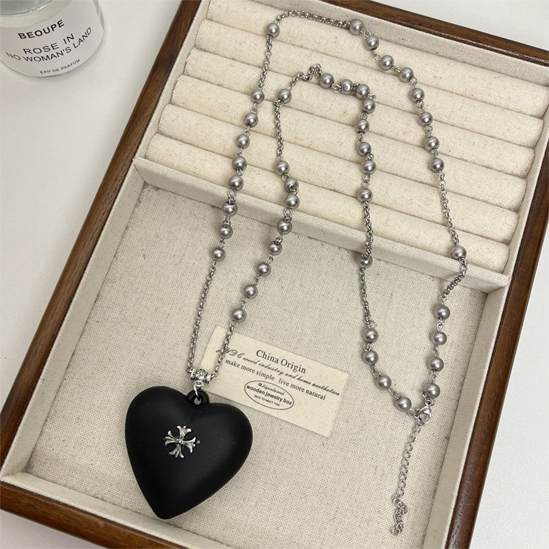 Black Cross Heart Pendant Necklace Women's Accessible Luxury Niche High-End Pearl Sweater Chain Long Versatile Accessories
