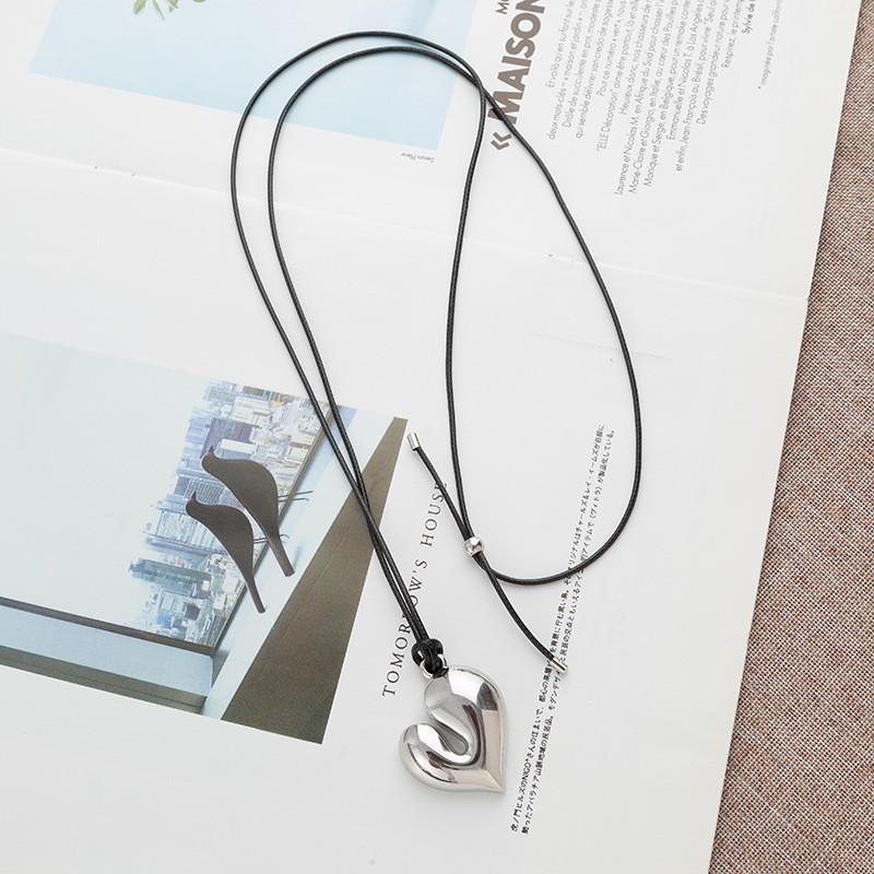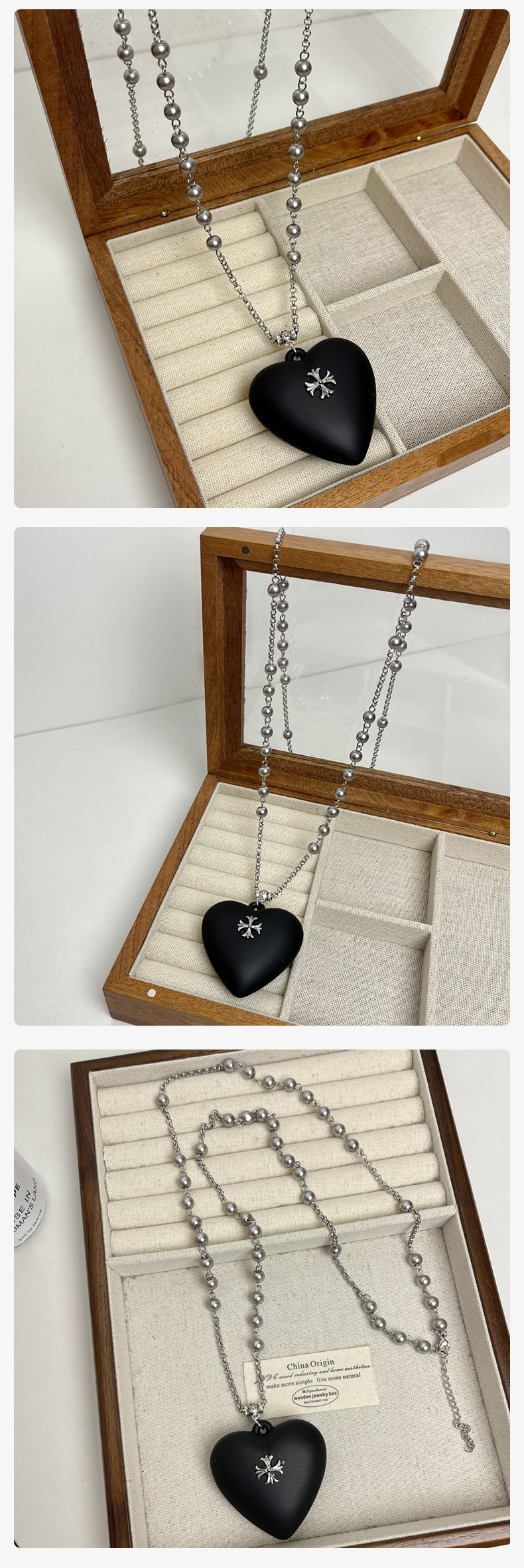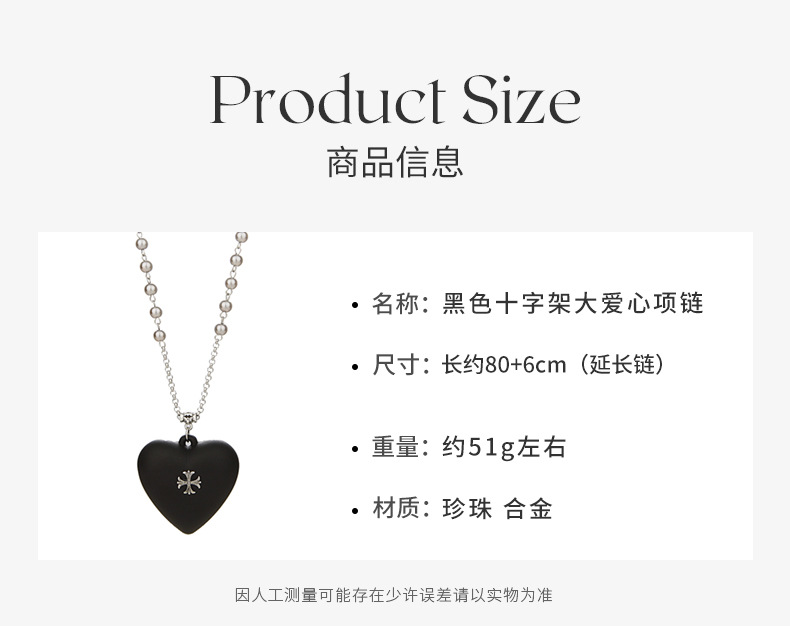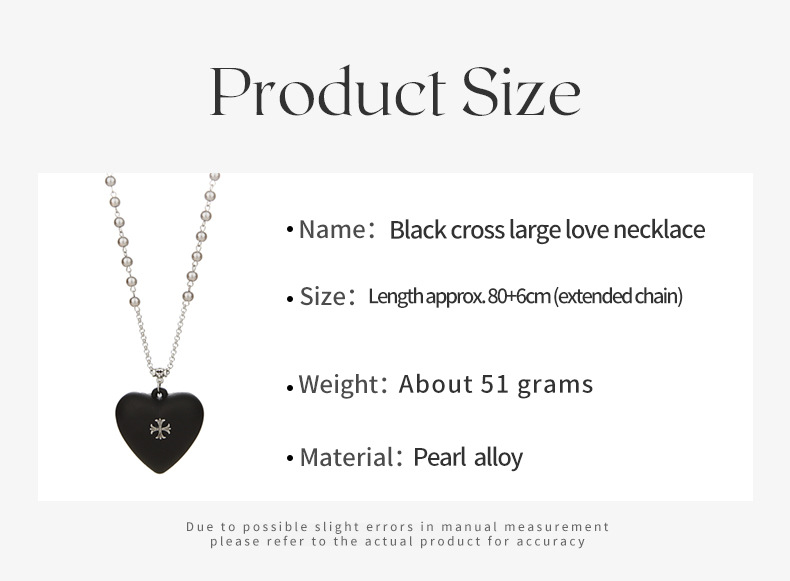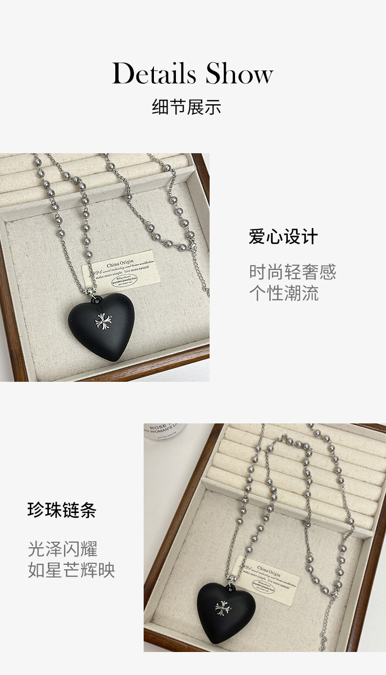 Black Cross Heart Pendant Necklace Women's Accessible Luxury Niche High-End Pearl Sweater Chain Long Versatile Accessories