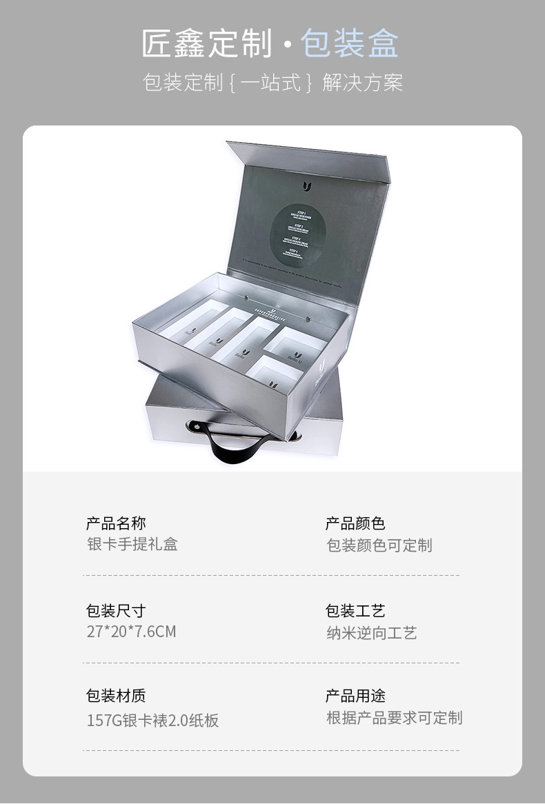 Advanced sense simple fashion silver card portable gift box can be customized LOGO packaging box creative flip packaging gift box