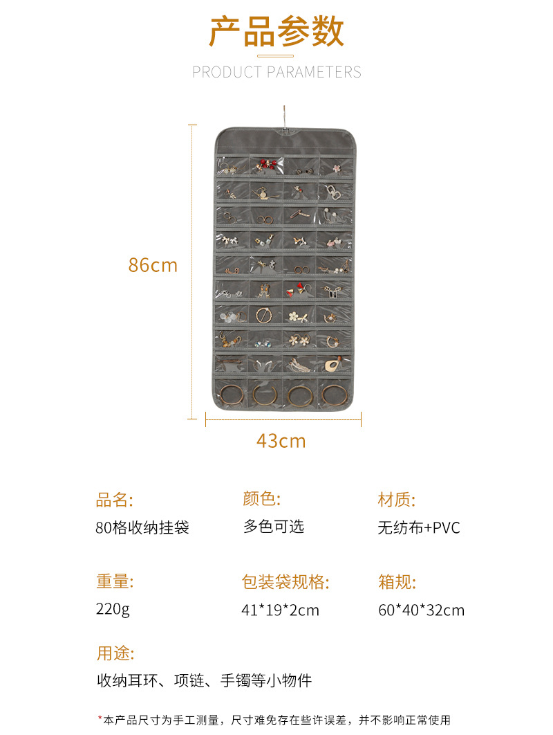 Transparent Pvc Jewelry Storage Hanging Bag Anti-Oxidation Earrings Necklace Ring Storage Hanging on the Wall Shou Nayou