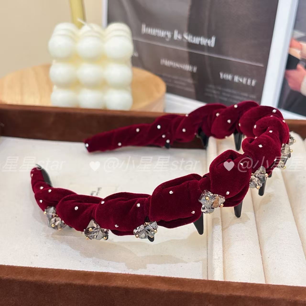 New Refined Velvet Belt Tooth Wave Head Hoop Heavy Industry All-match High Cranial Top Light Luxury Hair Hoop