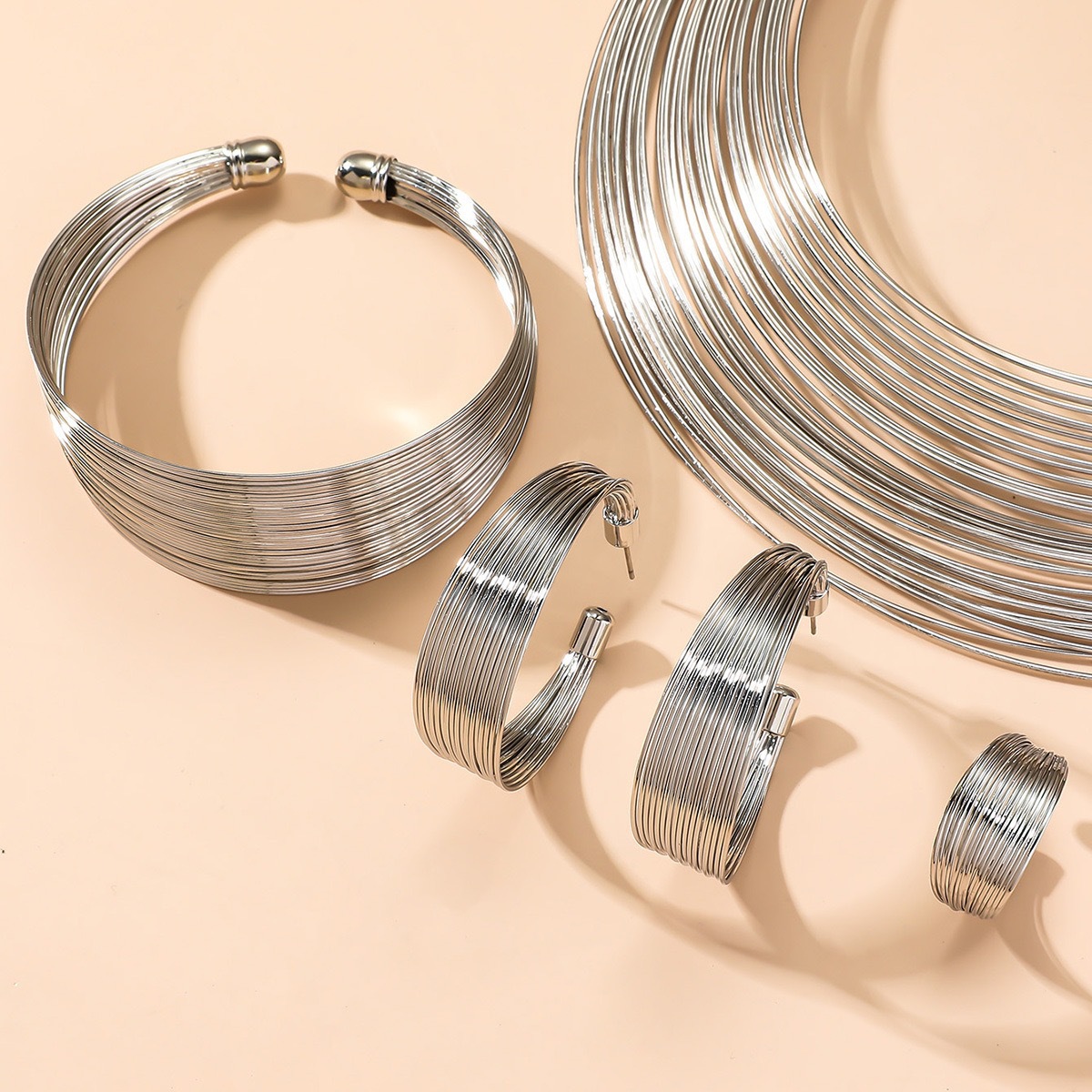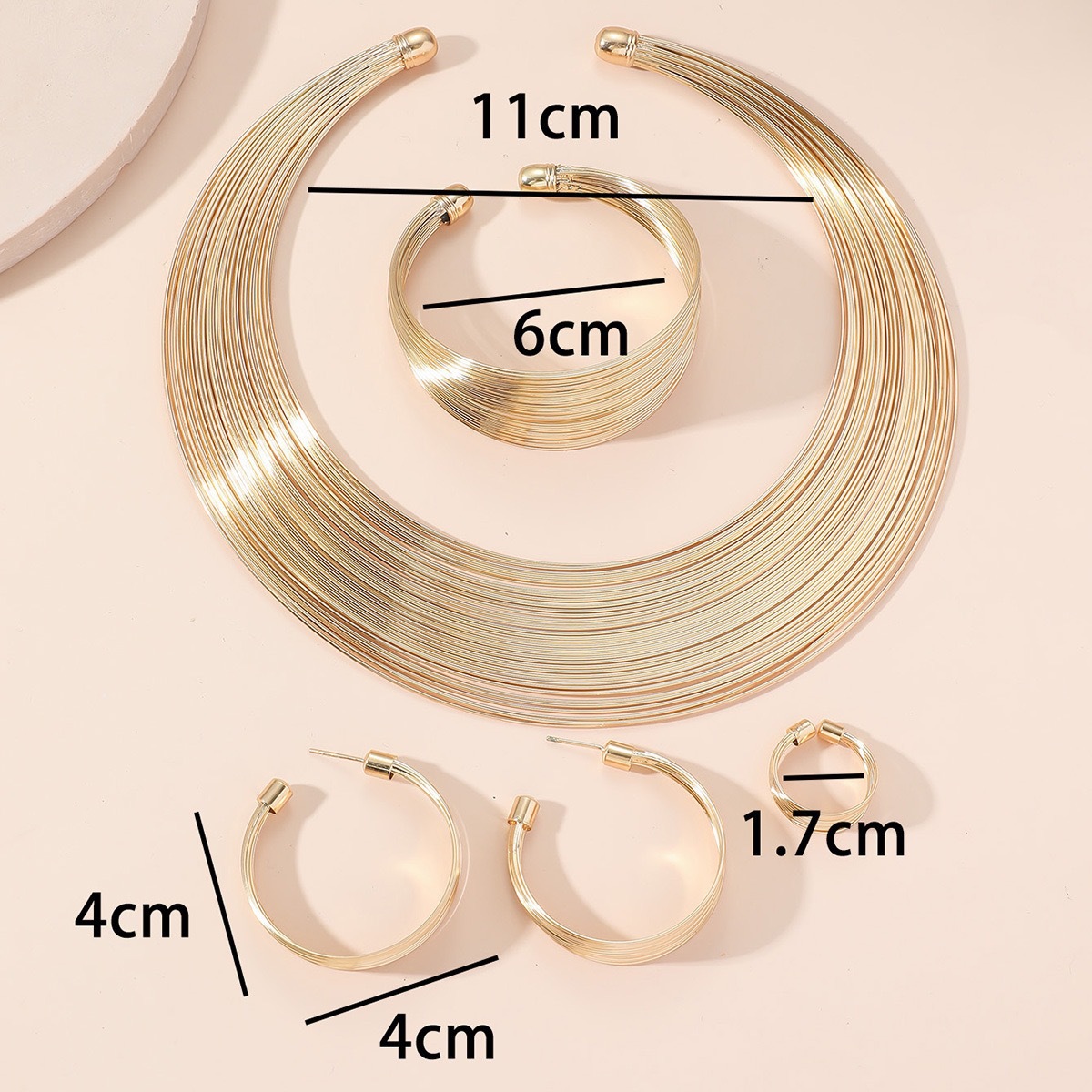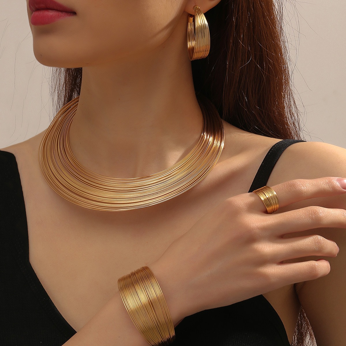 4-piece Hot Bridal Collar suit Multi-silk Necklace Exaggerated European and American Metal Collar Punk Bracelet Earrings Women