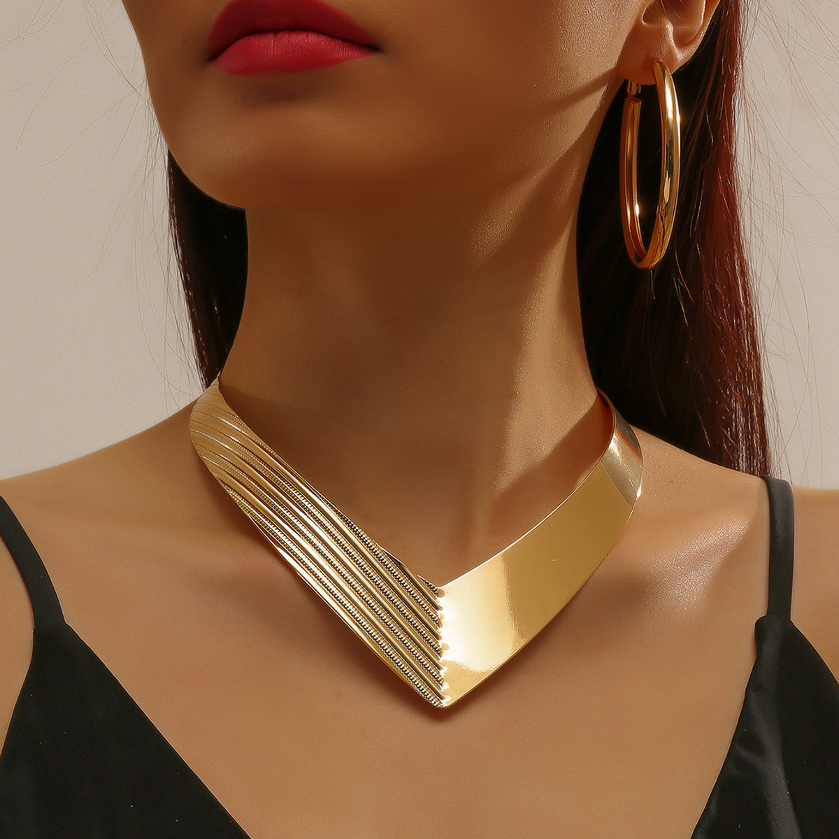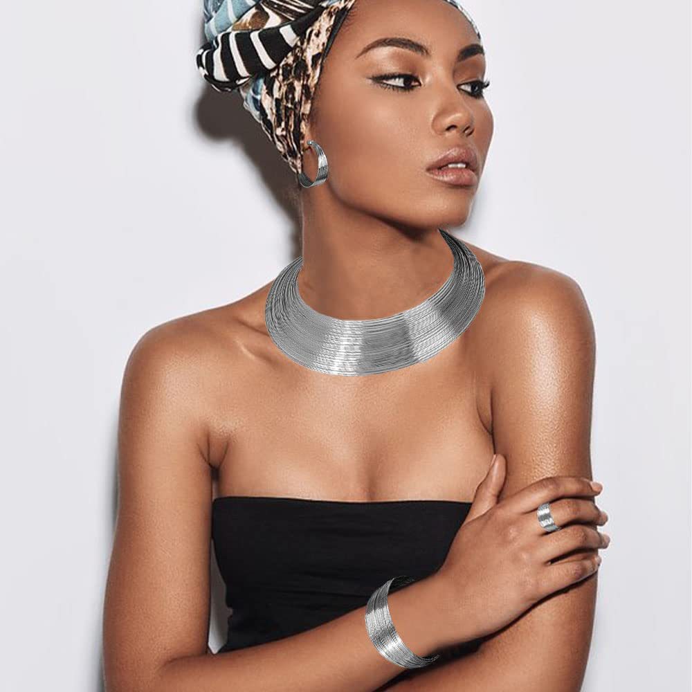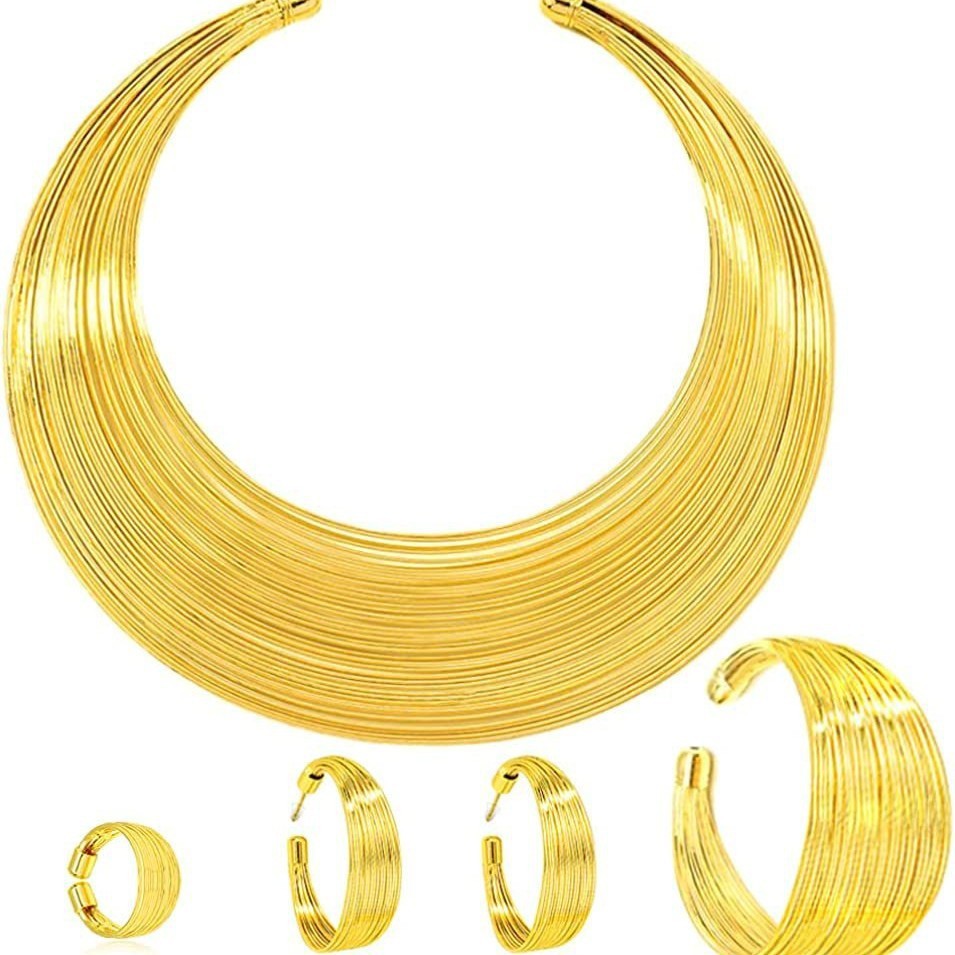 4-piece Hot Bridal Collar suit Multi-silk Necklace Exaggerated European and American Metal Collar Punk Bracelet Earrings Women