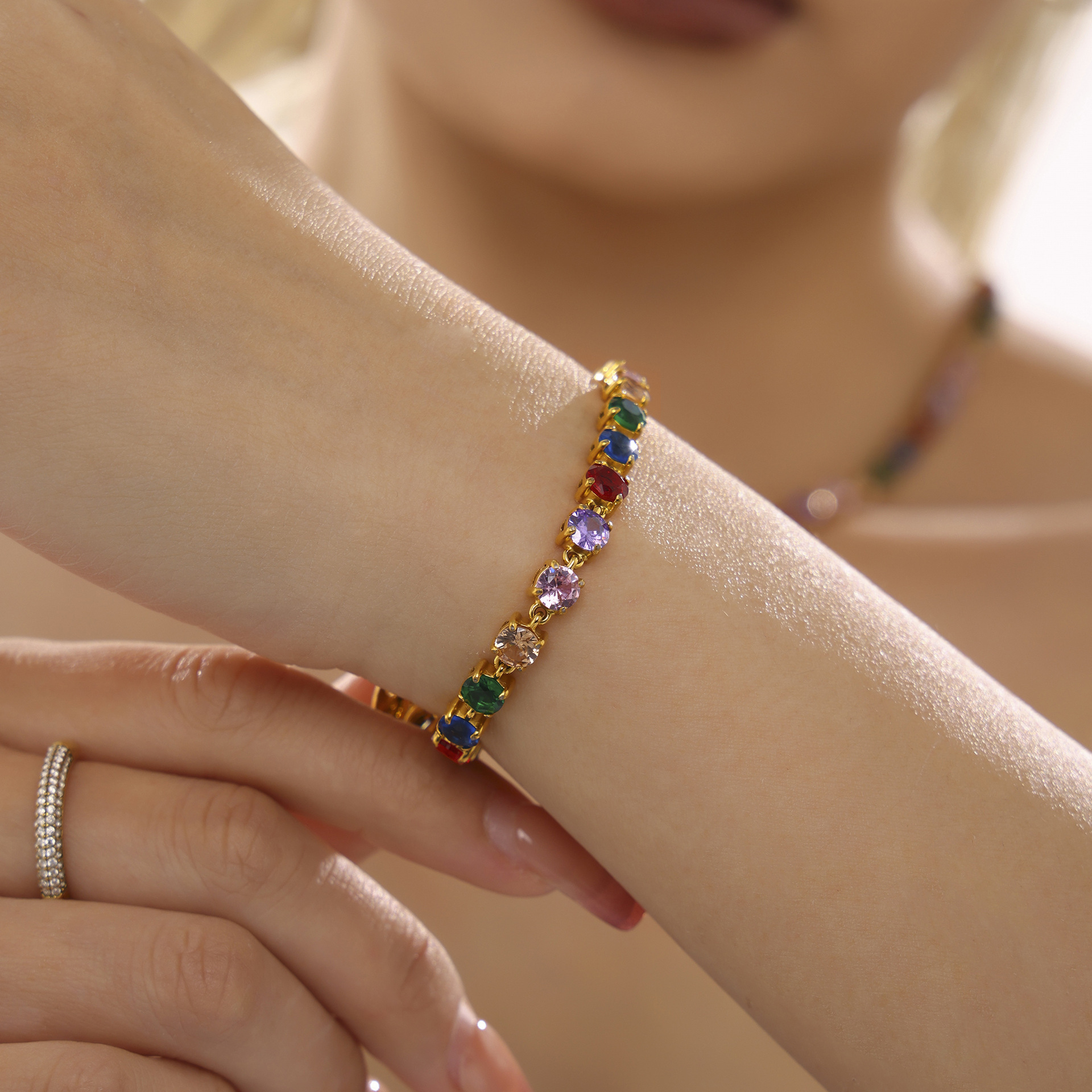 Color: TXE206-Gold Mixed Color Zircon Bracelet