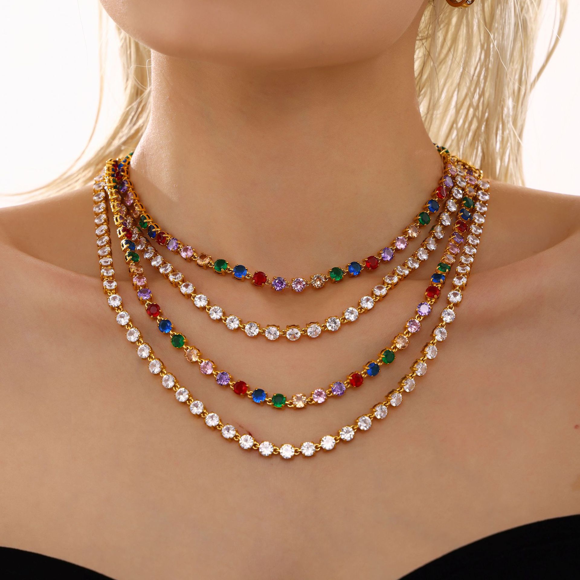 Color: TXP206-Gold Mixed Color Zircon Necklace