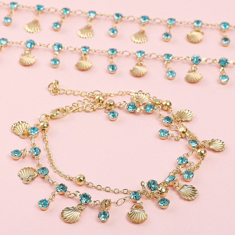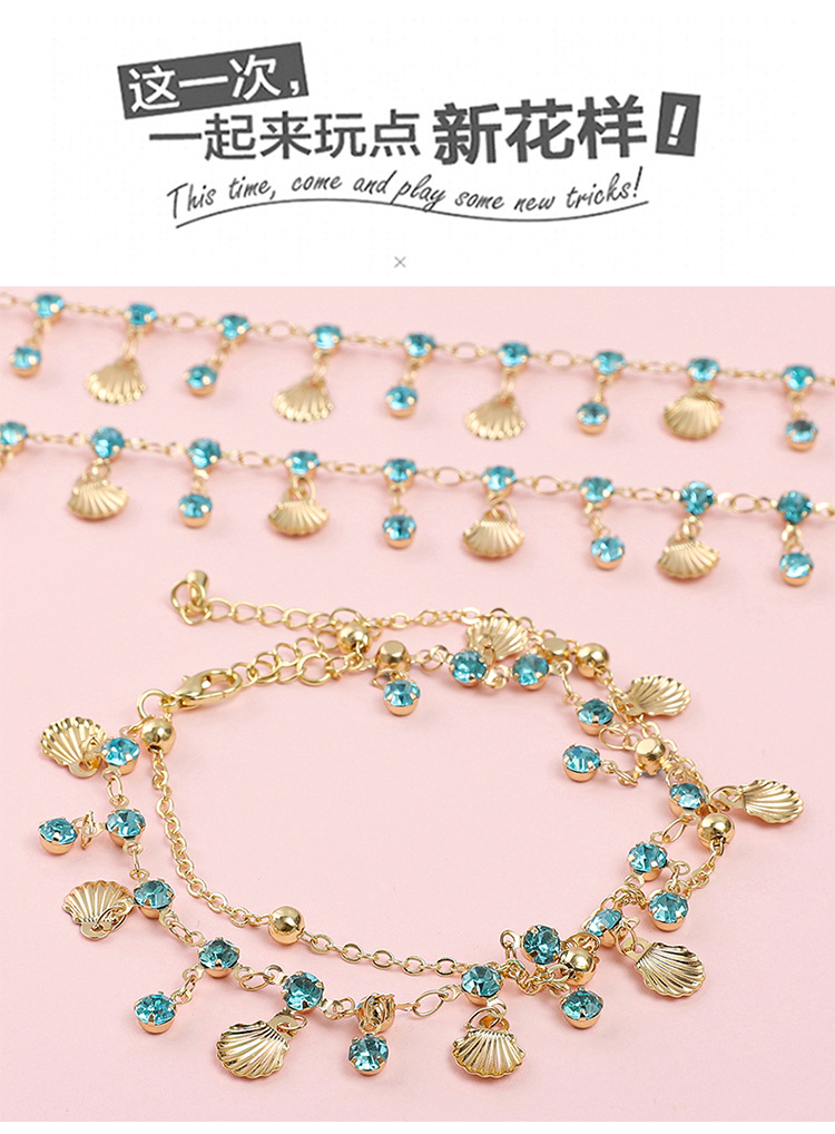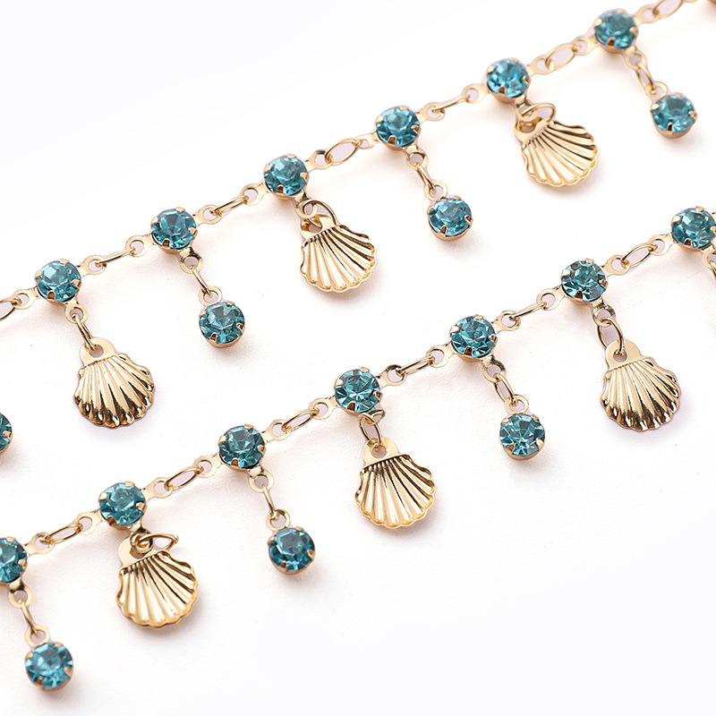 color retaining plating blue shell copper chain pendant rhinestone flow diy handmade chain copper shell antique tassel accessories