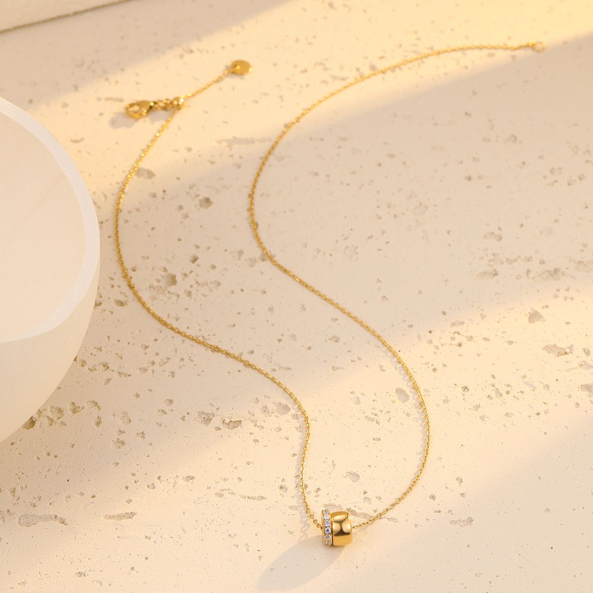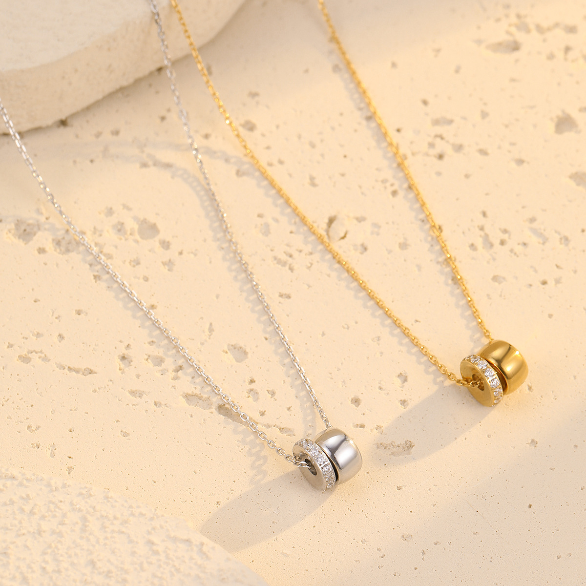 Cross-Border European and American Style Fashion Versatile Round Zircon Pendant Stainless Steel Necklace Niche High-End Choker Sweater Chain