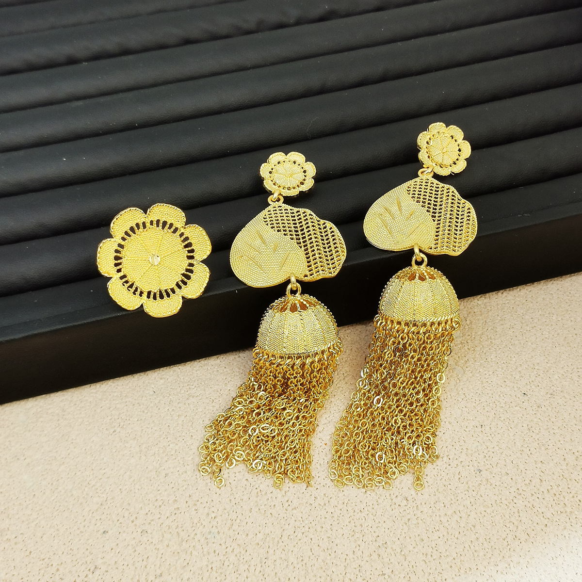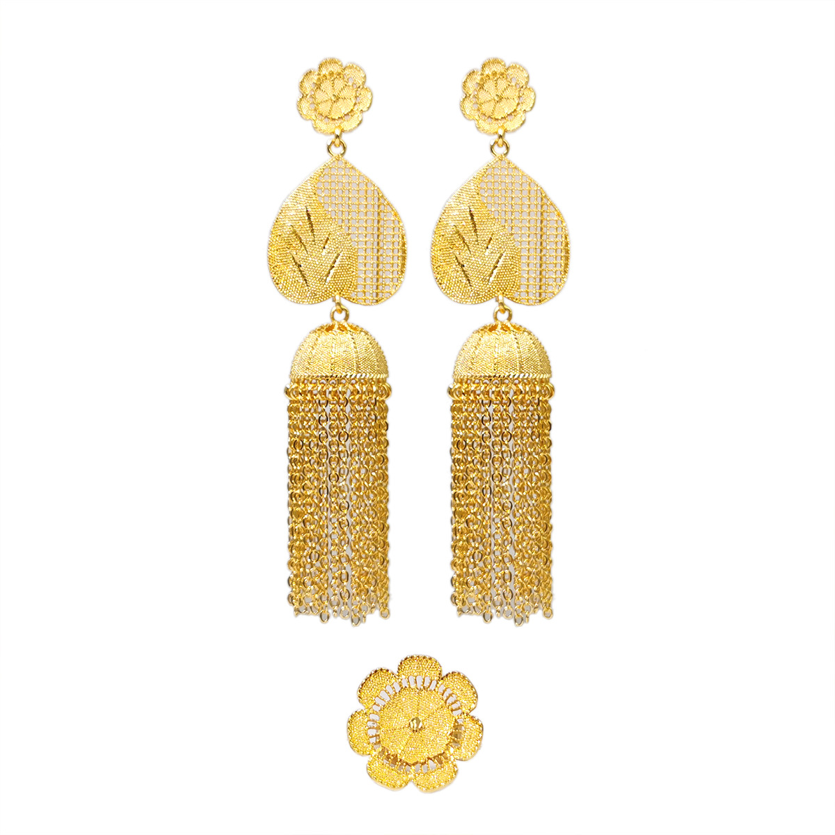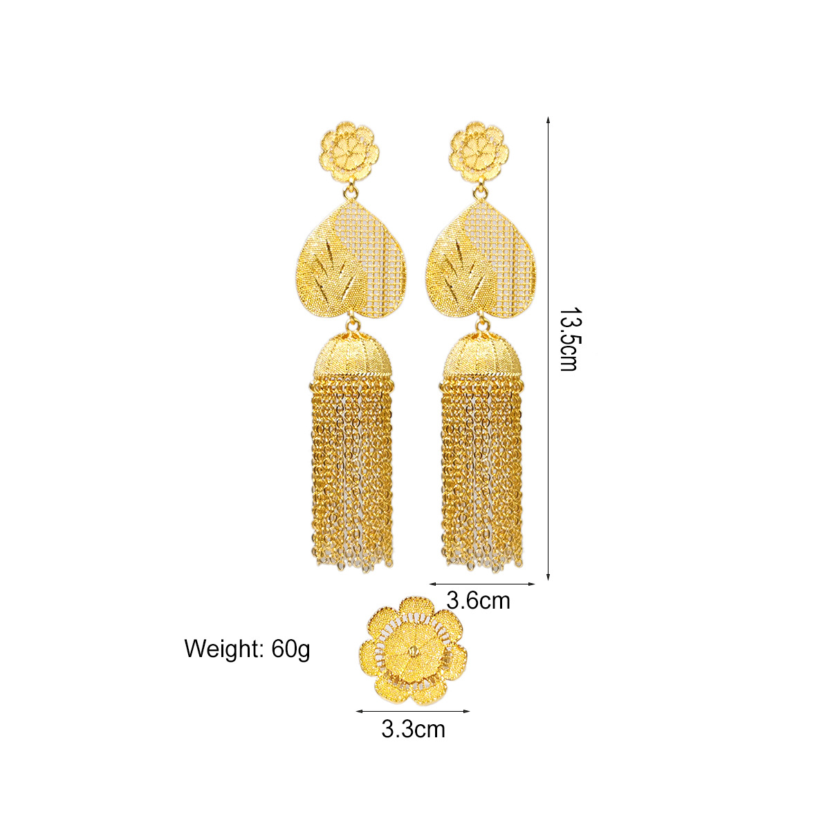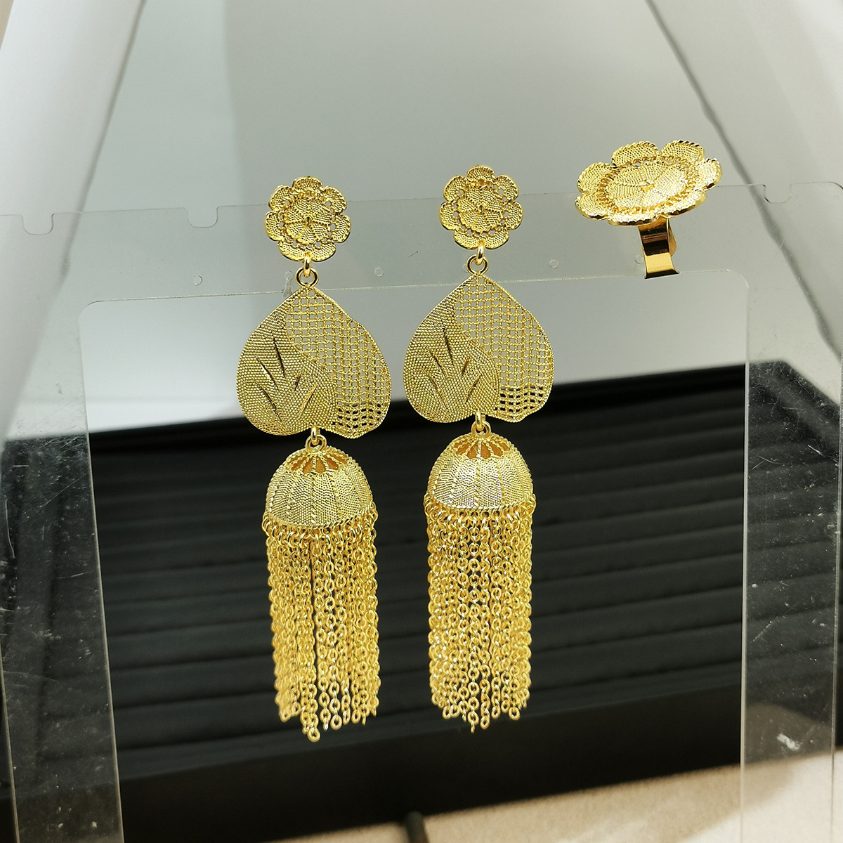 Middle East Bride Gold Plated Long Earrings Ring suit Wedding Jewelry Pendant Earrings Wholesale Dubai Plated 24K Ears