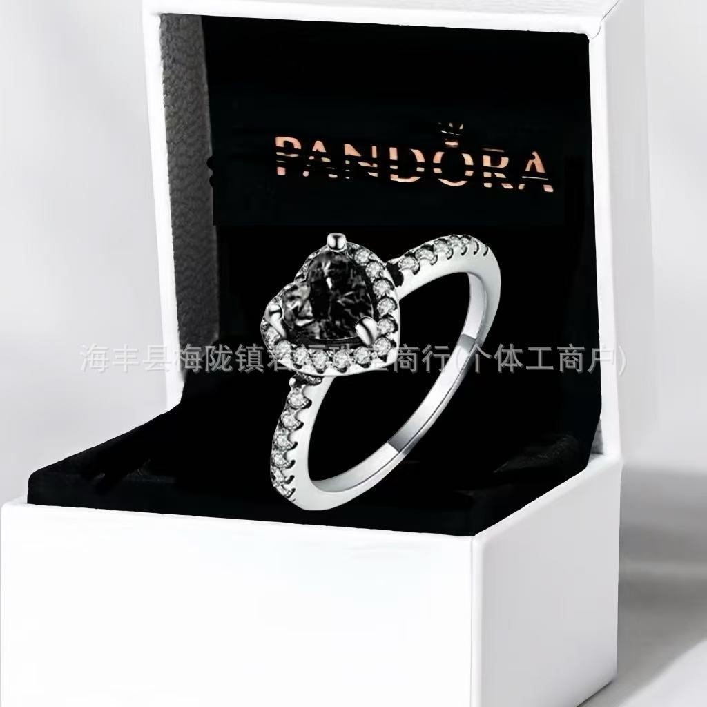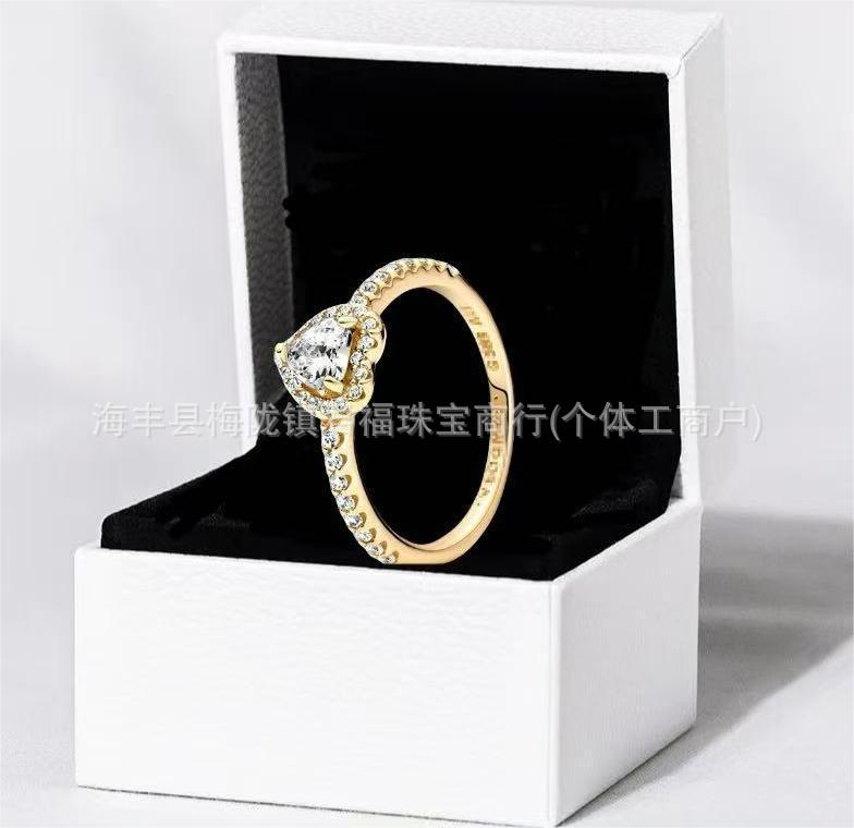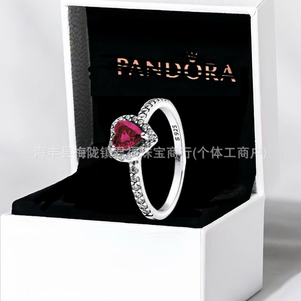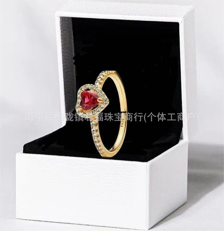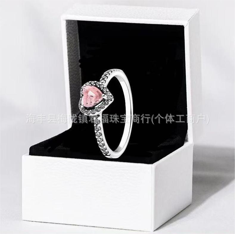 Cross-Border Exclusive for Panjiora White Copper Shining Red Heart Ring Love Pink Diamond Rose Gold Multi-Color Pair Ring for Women