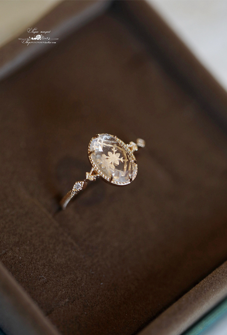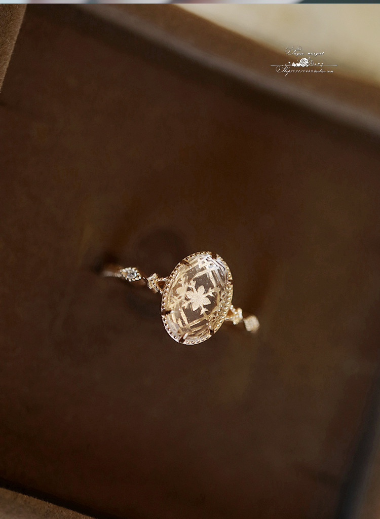 "Poems of Mirror Spring" Exquisite Light Luxury High Imitation Natural White Crystal Luxury Rose Flower Women's High-grade Sense Ring