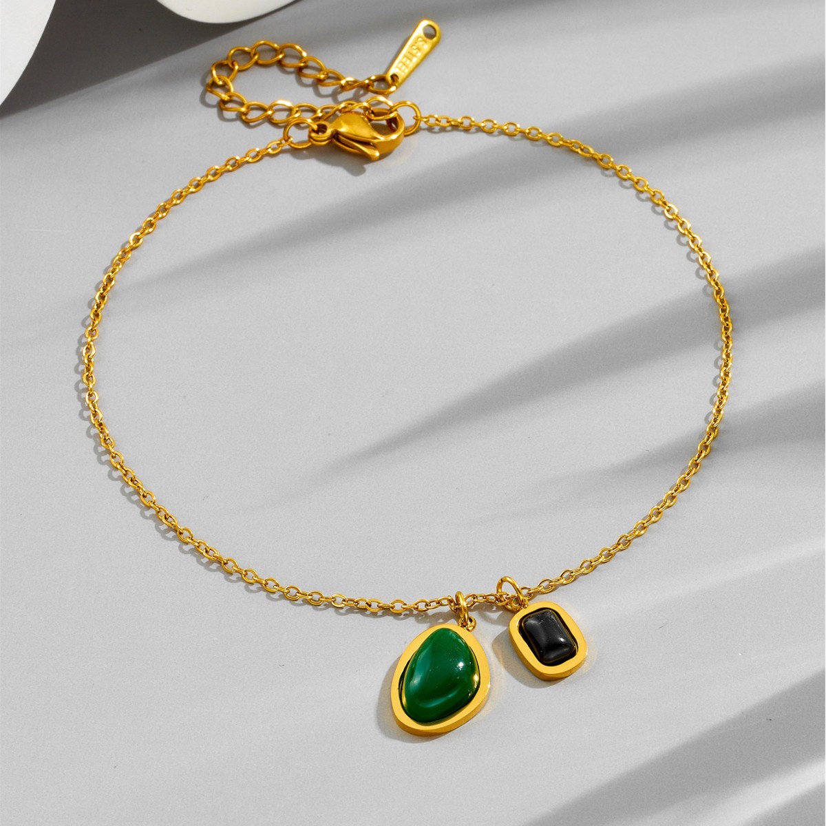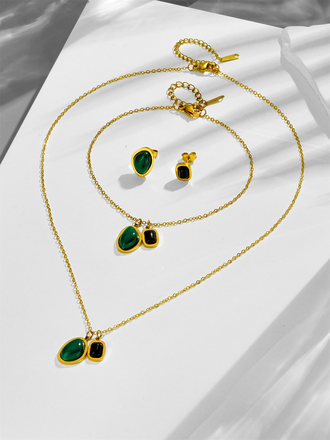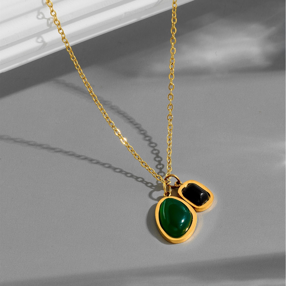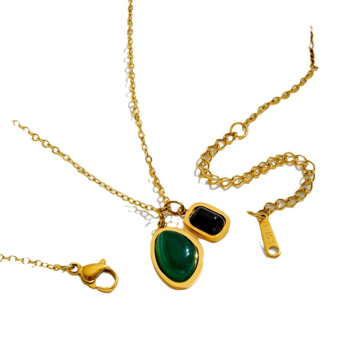 French Style Ins Green Agate Necklace Women's Irregular Agate Double Pendant Fashionable Light Luxury Niche Clavicle Chain Direct Selling