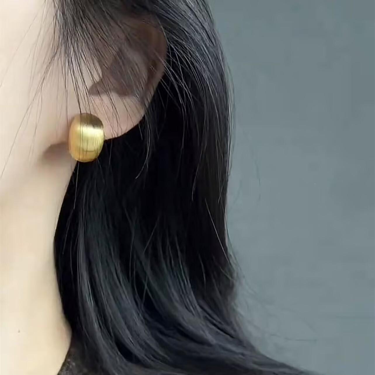 Wire-drawing Gold Earrings Women's S925 Silver Needle Sweet Cool Elegant Simple Earrings Korean Style Dongdaemun High-end Ear Trendy