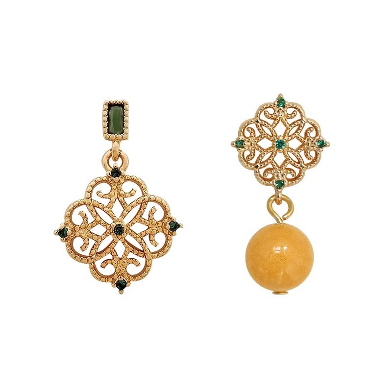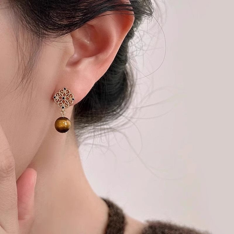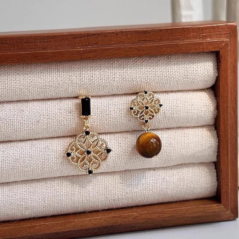 Retro Tiger's Eye Earrings Advanced Sense Unique Exquisite Hollow Earrings Autumn and Winter New Chinese Style National Style Asymmetric Earrings