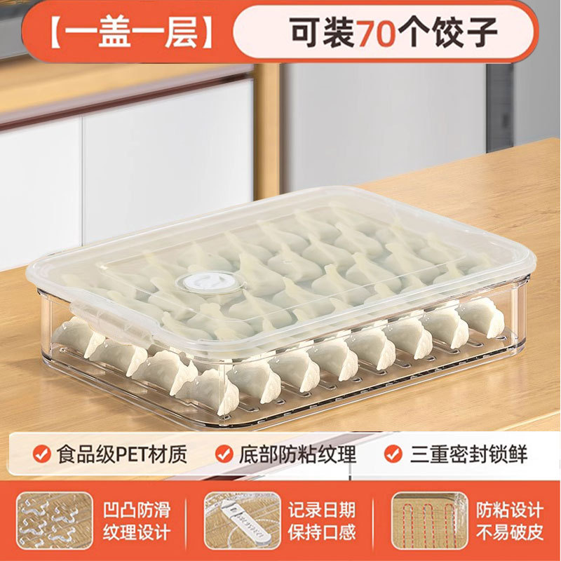 Specification model: ☆ Food grade material, full refund for frozen cracks ☆ [damage guaranteed compensation] lightning delivery - transparent color [one layer and one cover] can hold 70 dumplings/anti-stick bottom-32x23