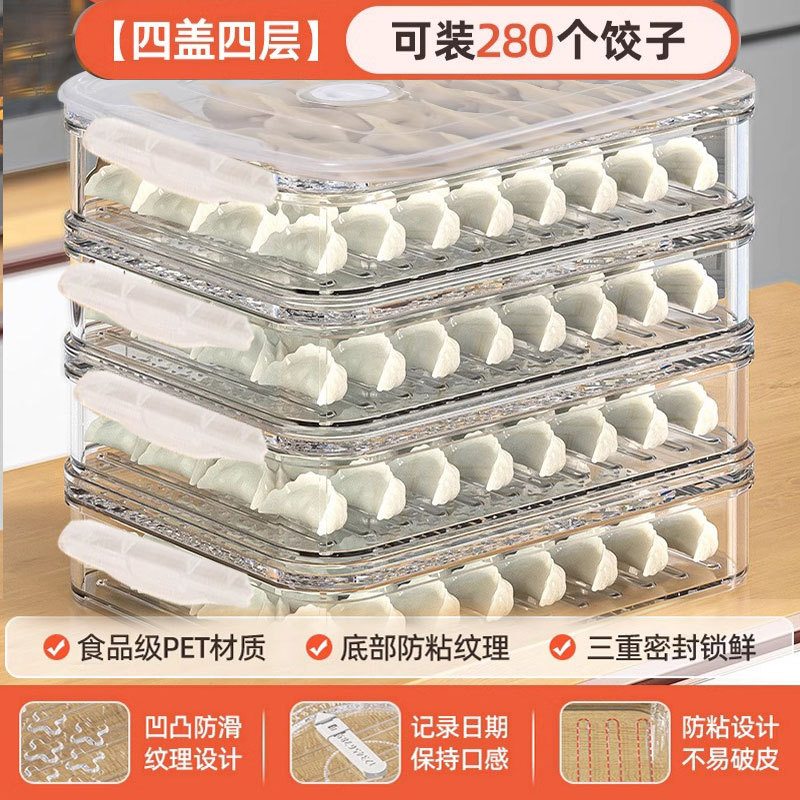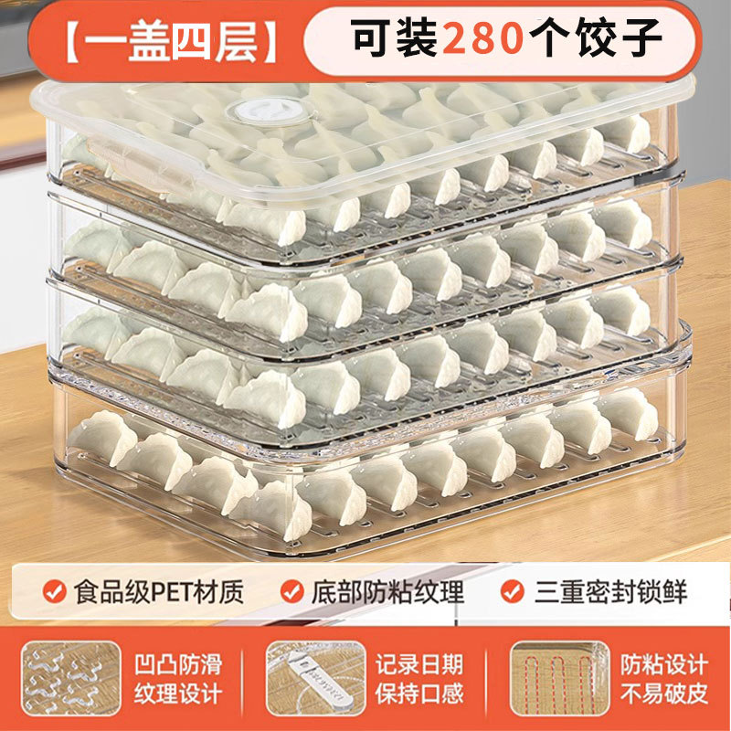 Specification model: ☆Food grade material, full refund for frozen cracks☆[damage guaranteed compensation] lightning delivery - transparent color [four layers and one cover] can hold 280 dumplings/anti-stick bottom-32x2