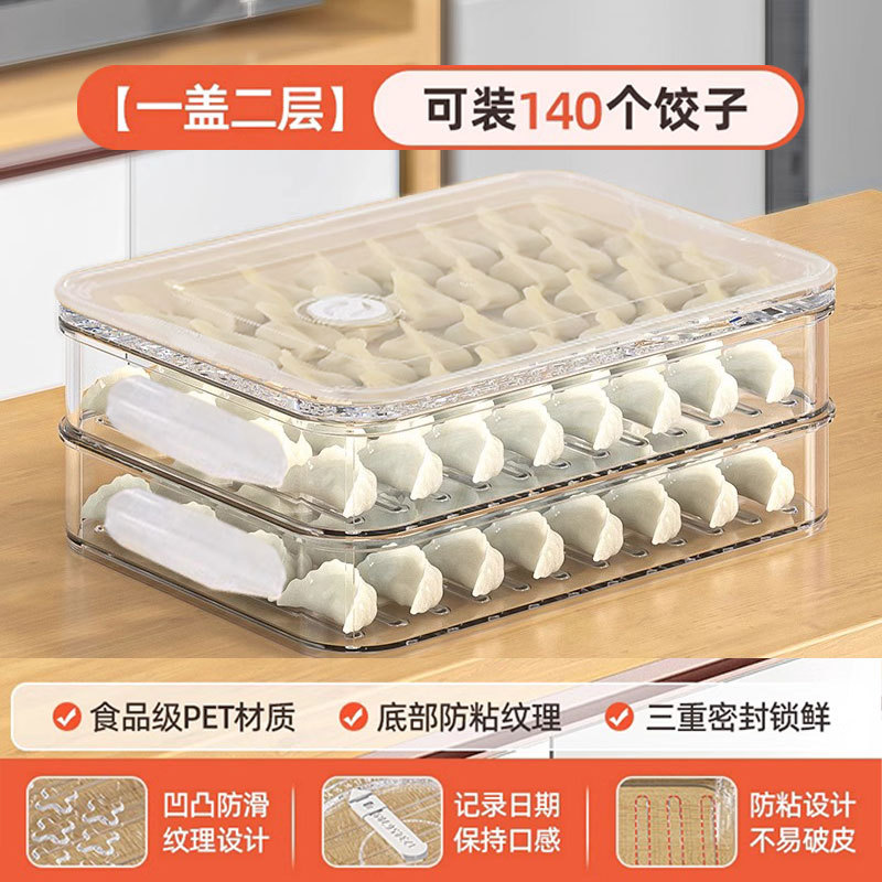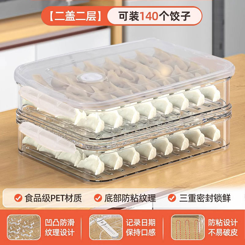 Specification model: ☆Food grade material, full refund for frozen cracks☆[damage guaranteed compensation] lightning delivery - transparent color [second layer and two lids] can hold 140 dumplings/anti-stick bottom-32x2