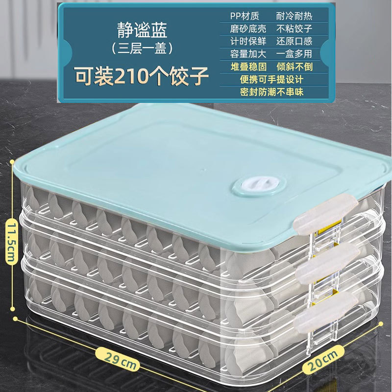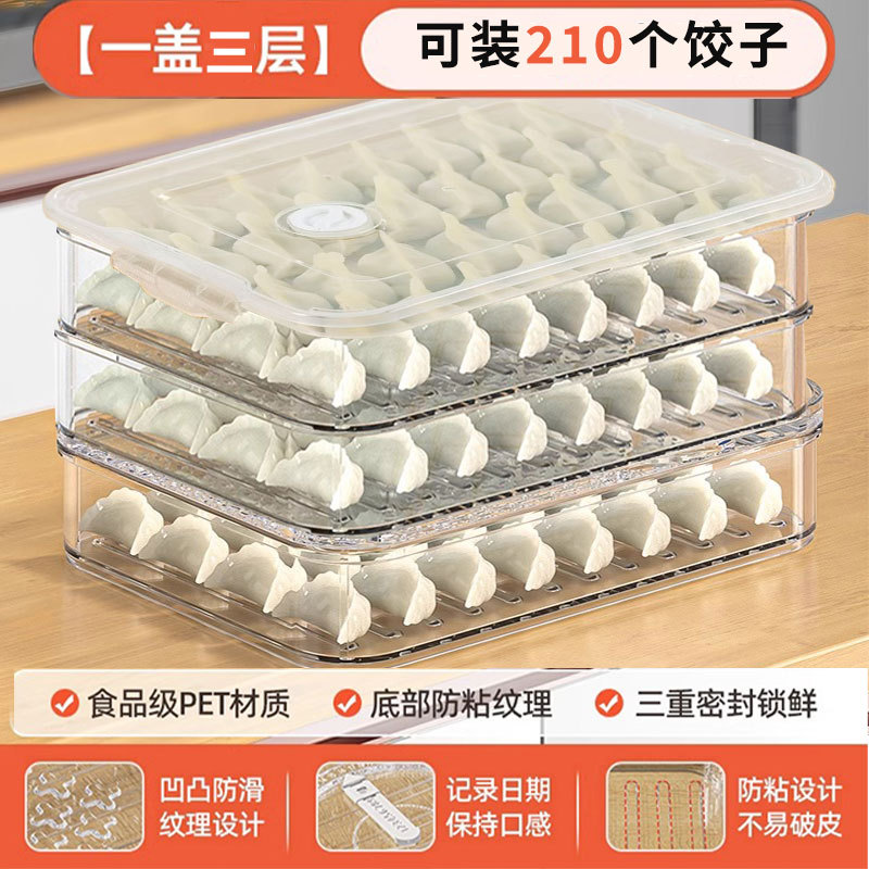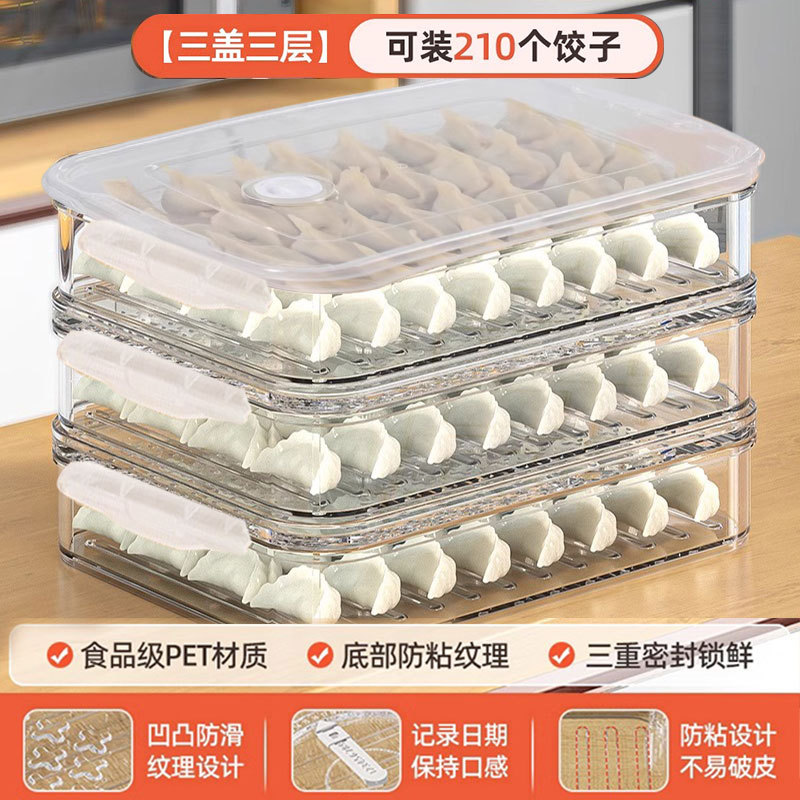 Specification model: ☆Food grade material, full refund for frozen cracks☆[damage guarantee] lightning delivery - transparent color [three layers and three lids] can hold 210 dumplings/anti-stick bottom-32x2