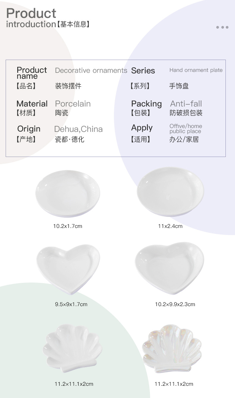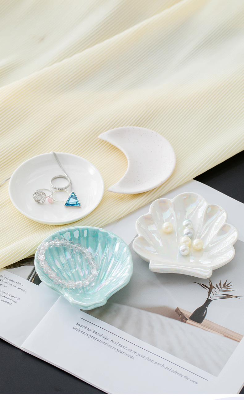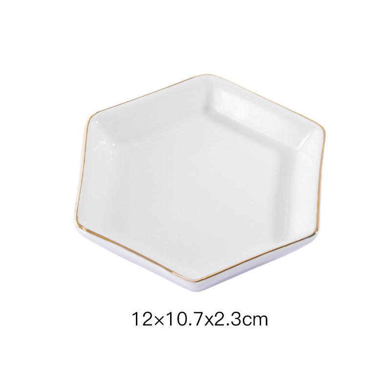 Foreign Trade Jewelry Storage Tray Square Round Ceramic Jewelry Tray with Gold Edge Necklace Ornament Pearl Tray