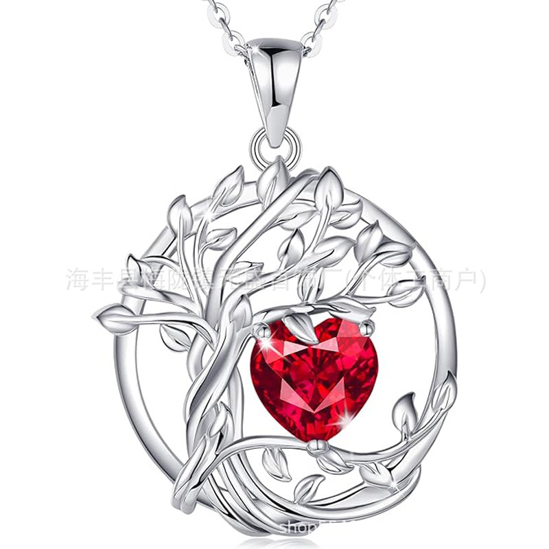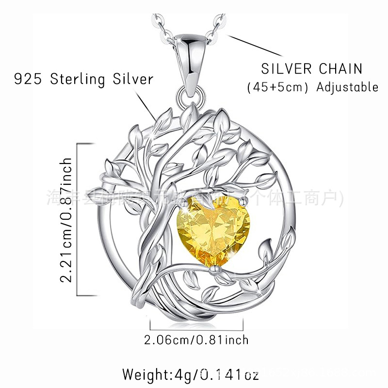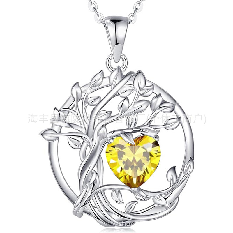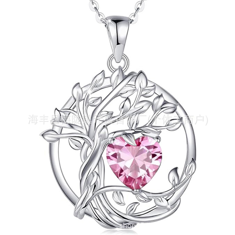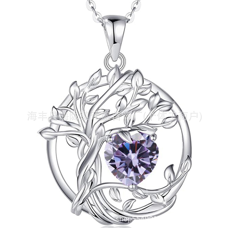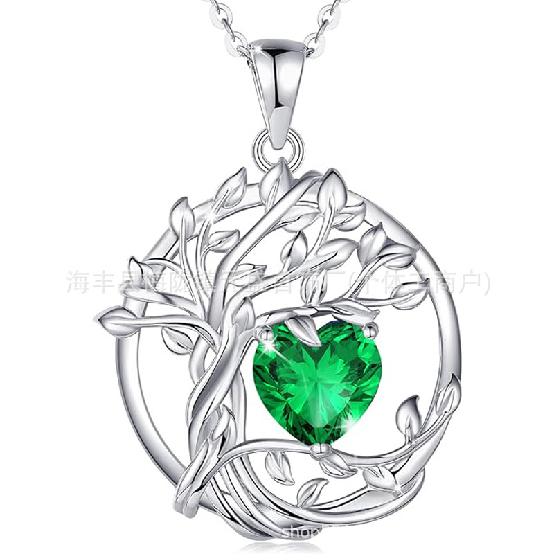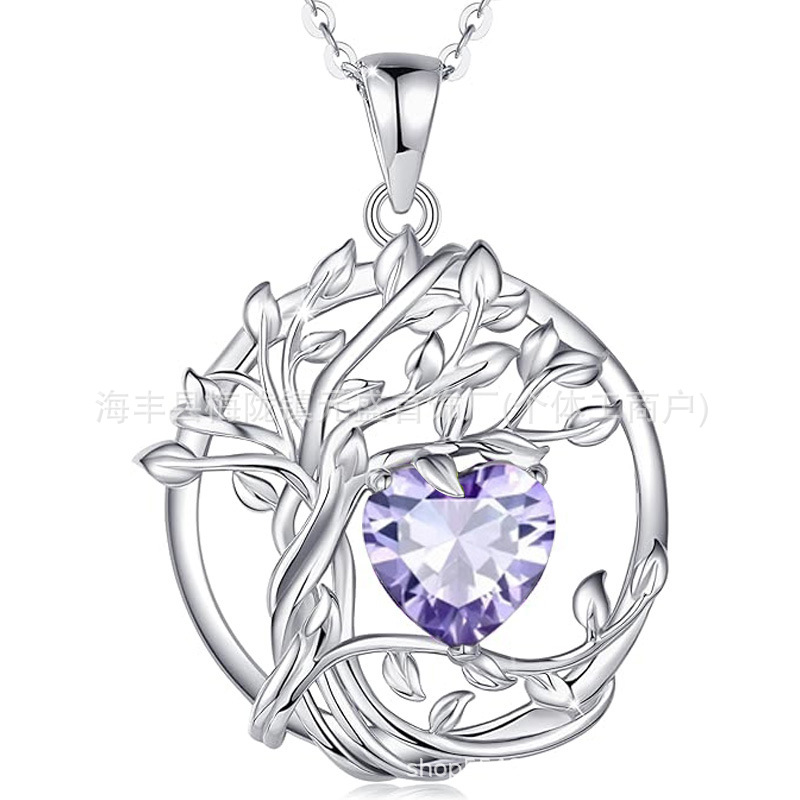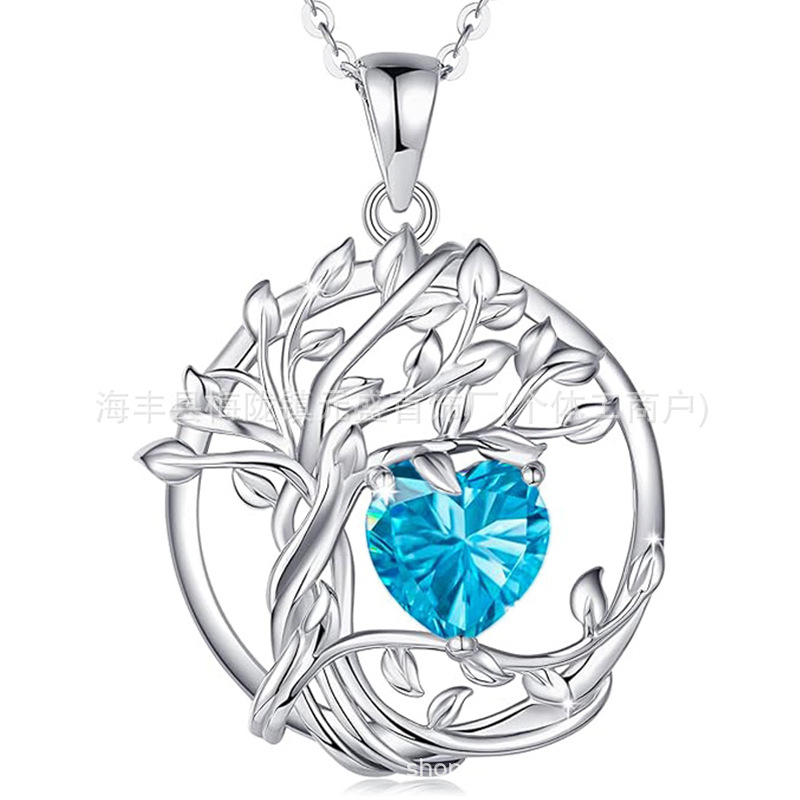 European and American Cross-Border Tree of Life S925 Sterling Silver Double-Layer Necklace Female Twelve Birthstone Amazon Pendant Clavicle Chain