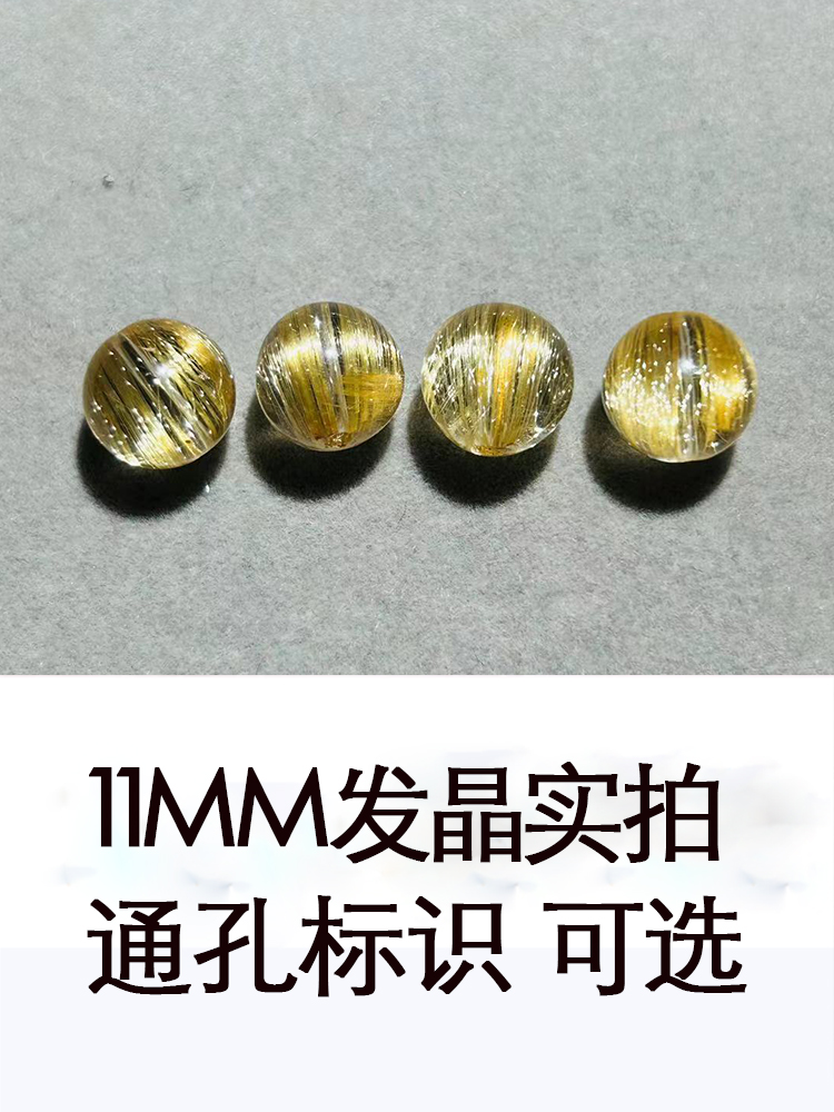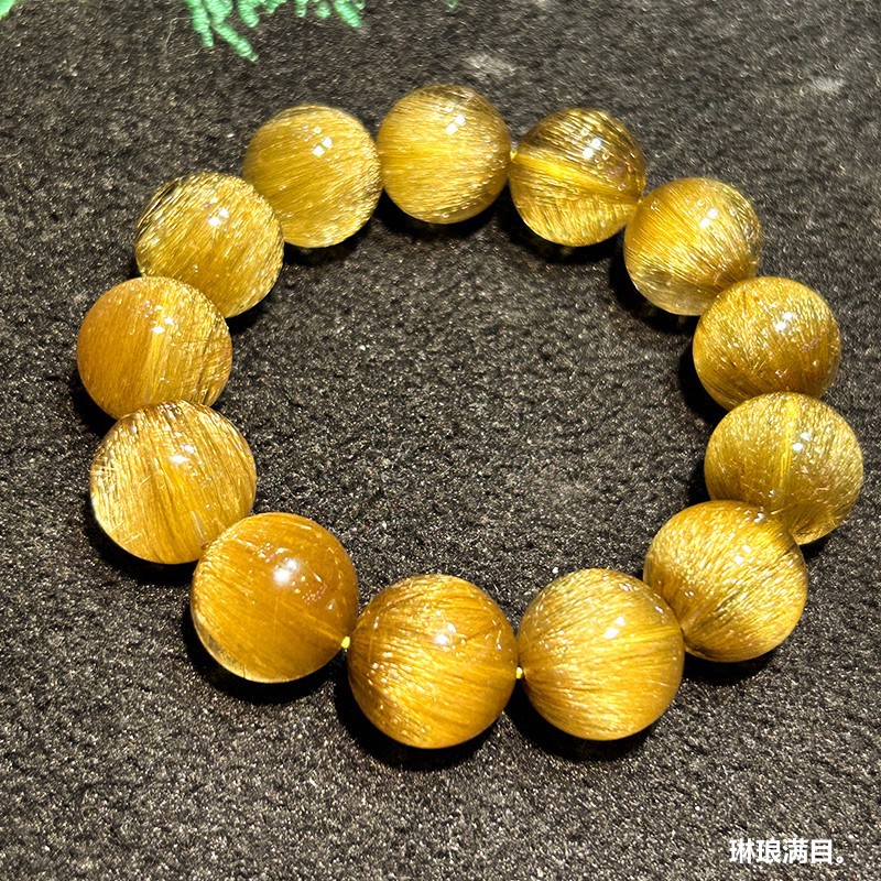 Natural Brazil Titanium Crystal Single Bead Crystal Bead Bracelet with Beads 7A Collection Gold Crystal Bead Men's and Women's Fashion