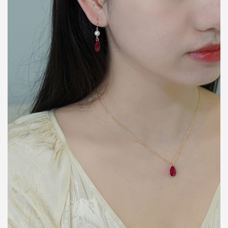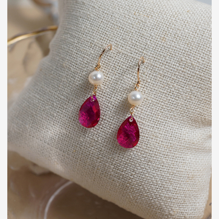 Color: 411119Artificial pigeon blood ruby pearl earrings