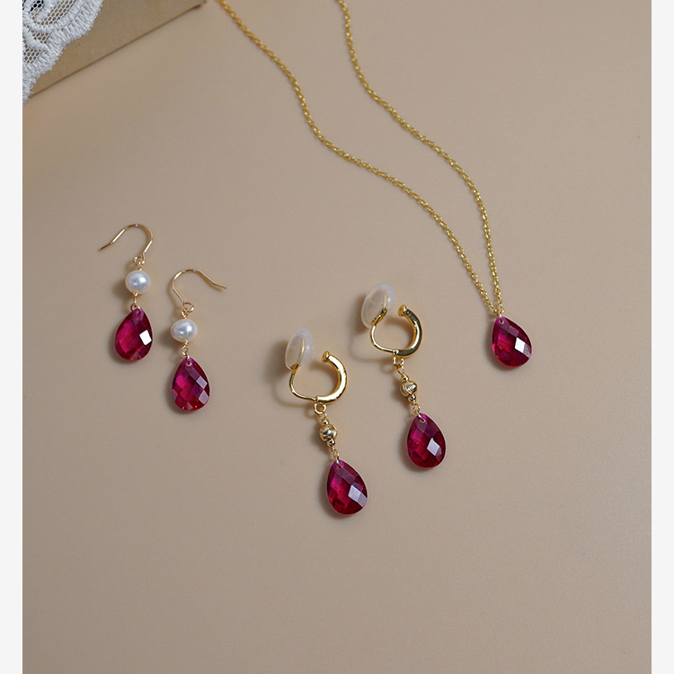 Color: 411120Artificial pigeon blood ruby ear clips