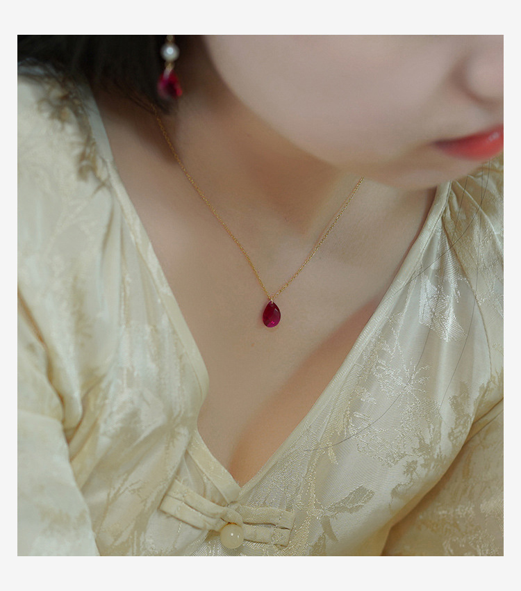 Color: 411118Artificial large pigeon blood ruby necklace