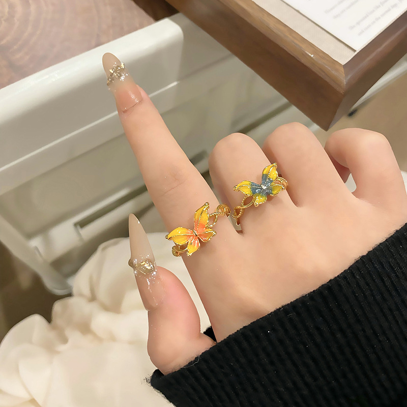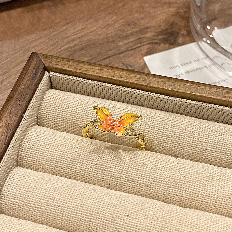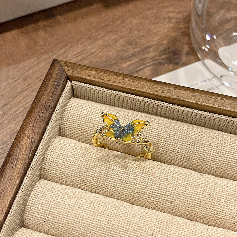 Vintage High-end Japanese Butterfly Enamel Series Ring Women's vintage Niche Design Personalized Light Luxury Ring