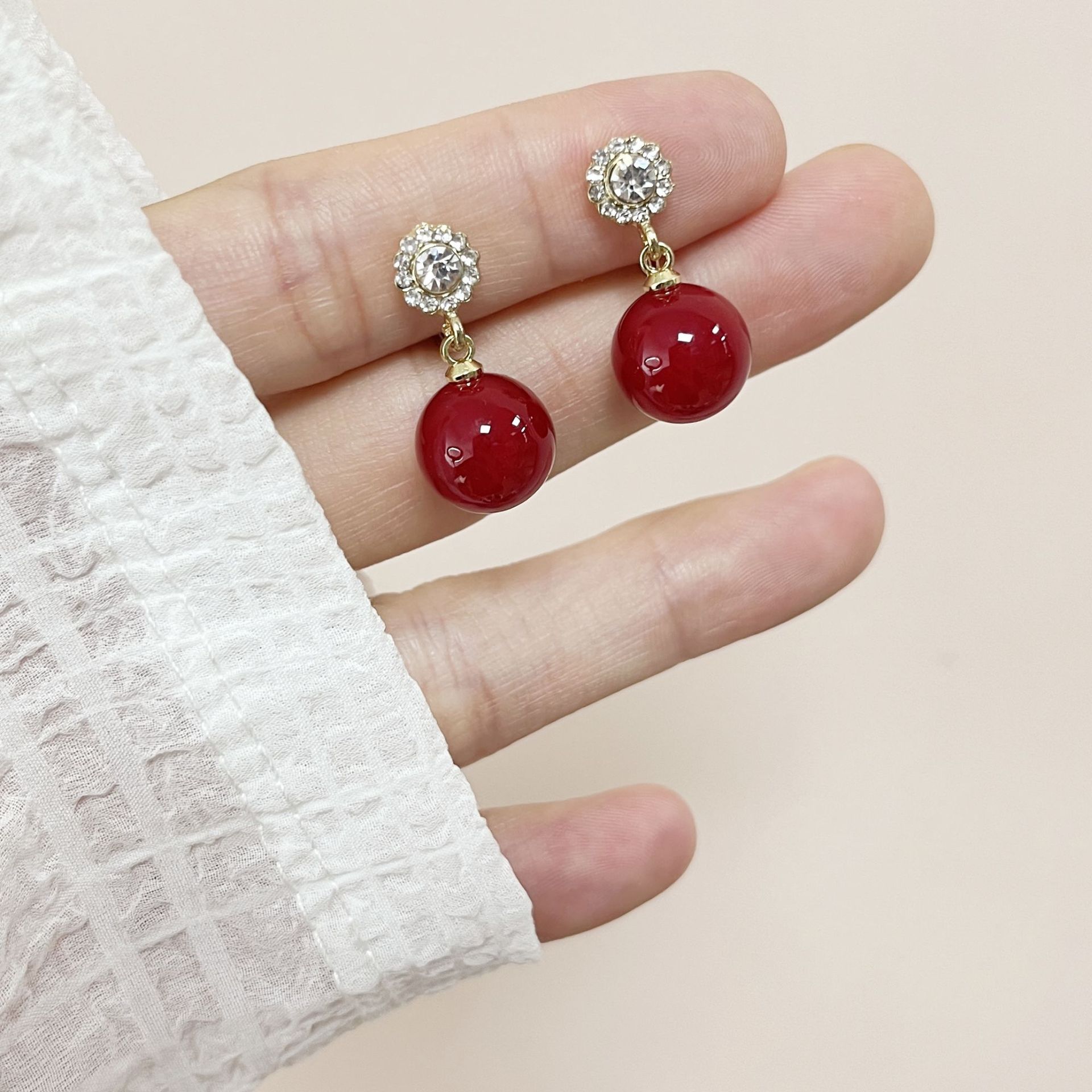 Color: 195-zircon red bead mosquito coil ear clip