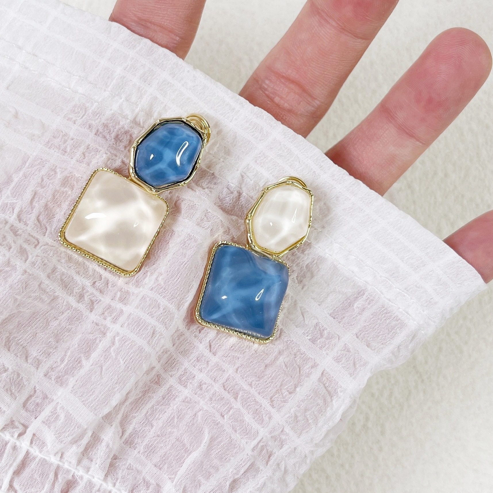 Color: 217-blue and white plaid mosquito coil ear clip