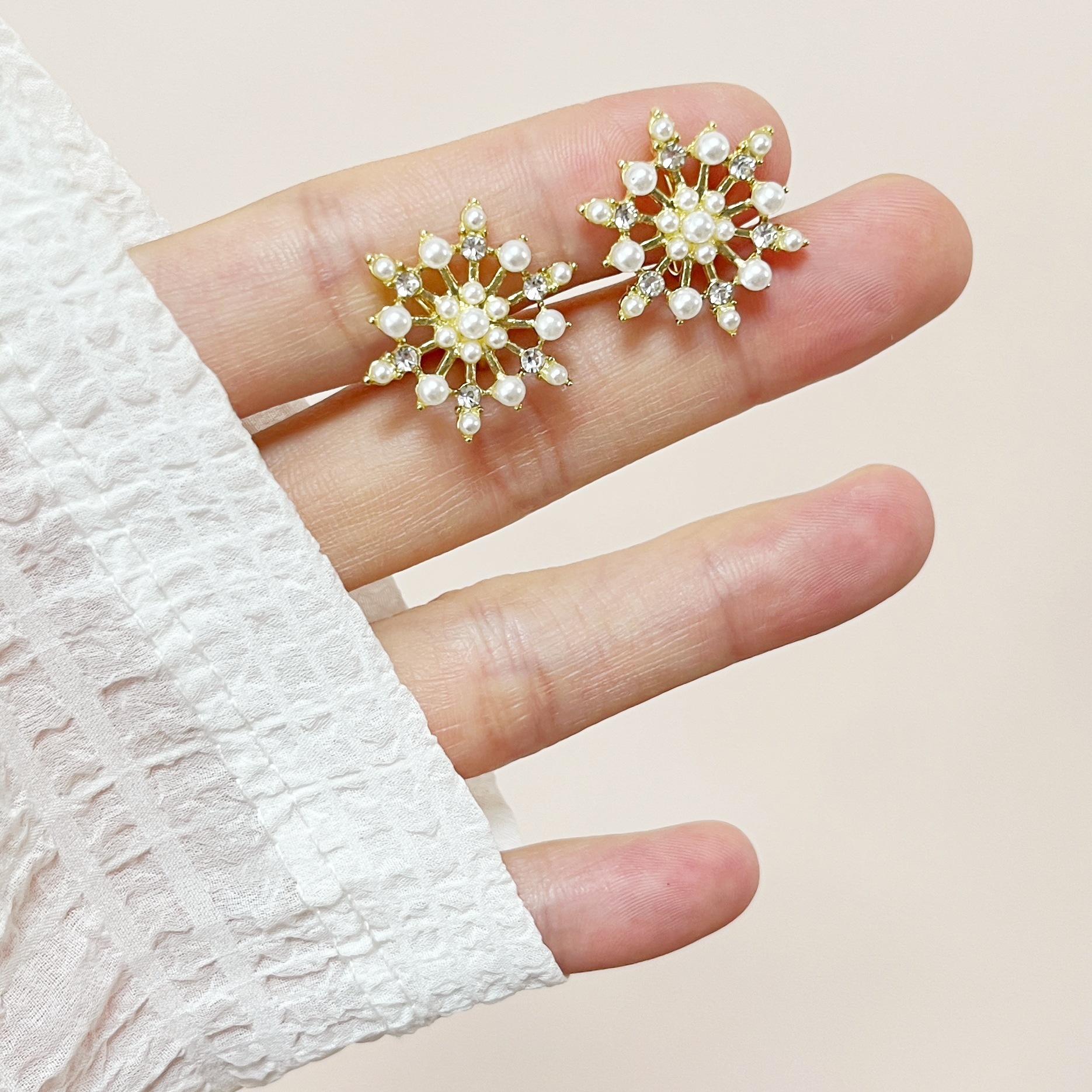 Color: 219 - small pearl zircon snowflake mosquito coil earrings