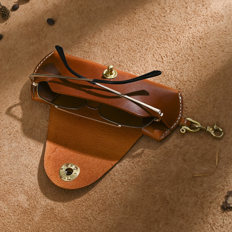 Ancient Chaoke American Vegetable Tanned Cowhide Glasses Case Fashion Portable Leather Sunglasses Storage Box Texted Glasses Bag