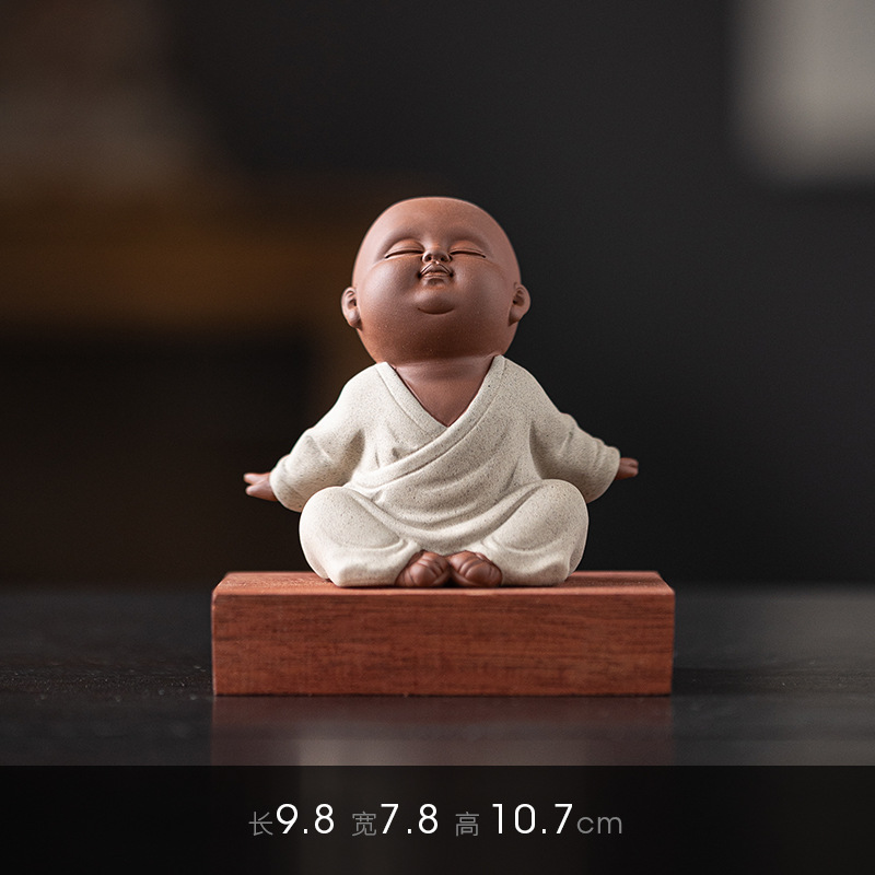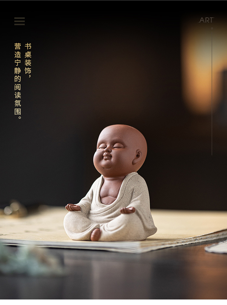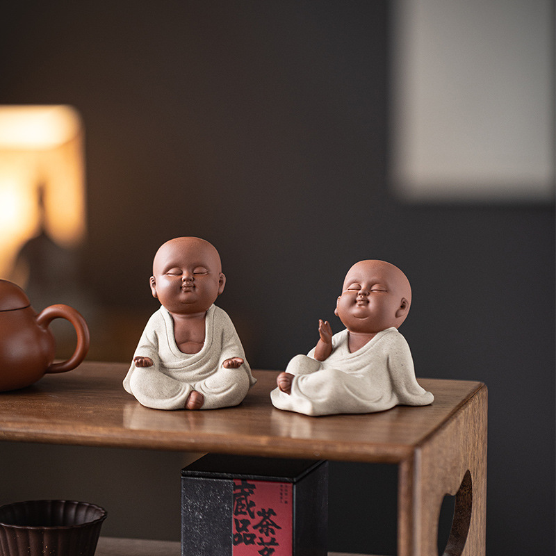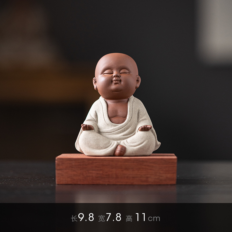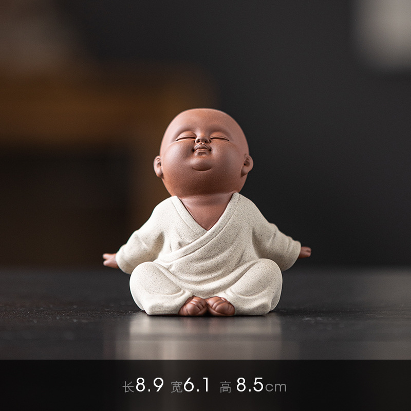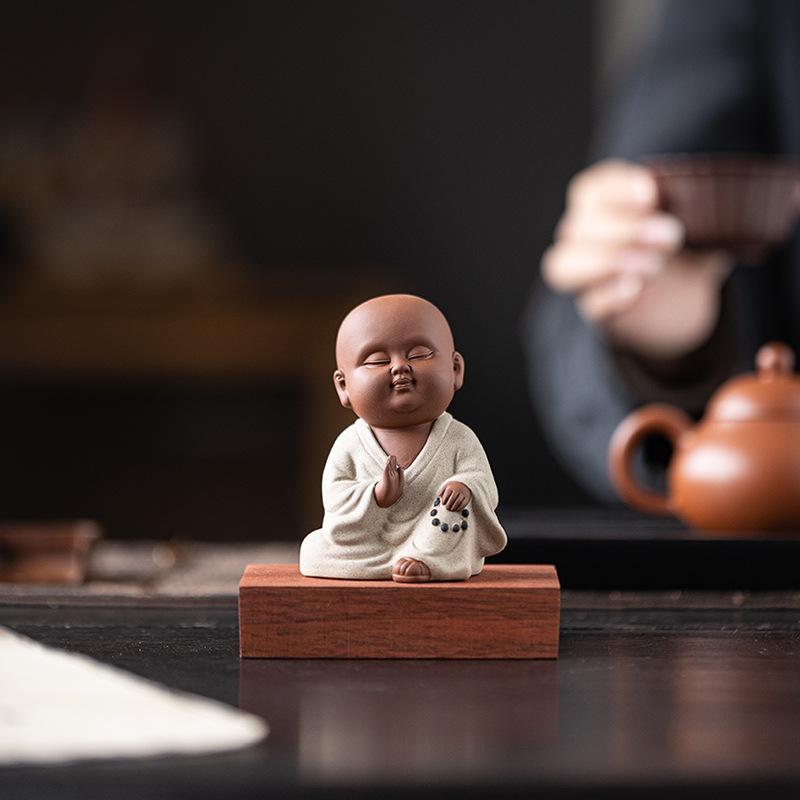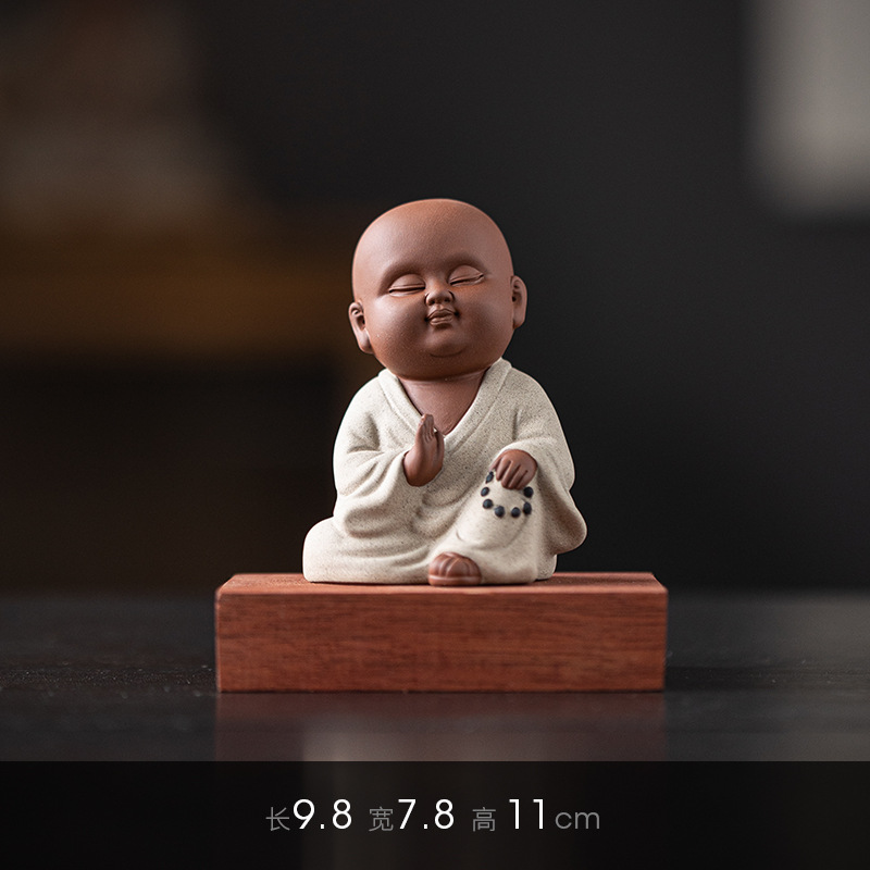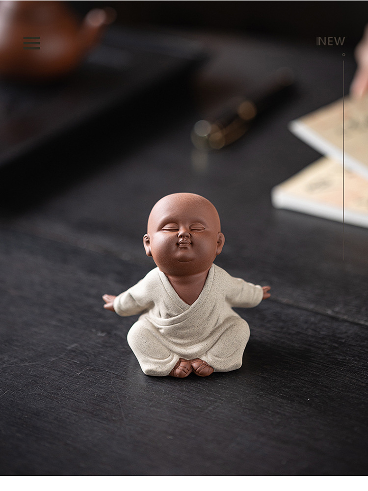 New Chinese Style Purple Sand Small Monk Decoration Zen Buddha Style Small Monk Tea Room Bogu Frame Tea Space Desktop Decoration