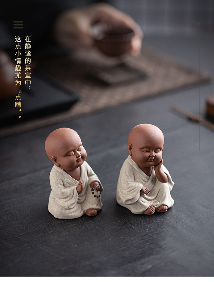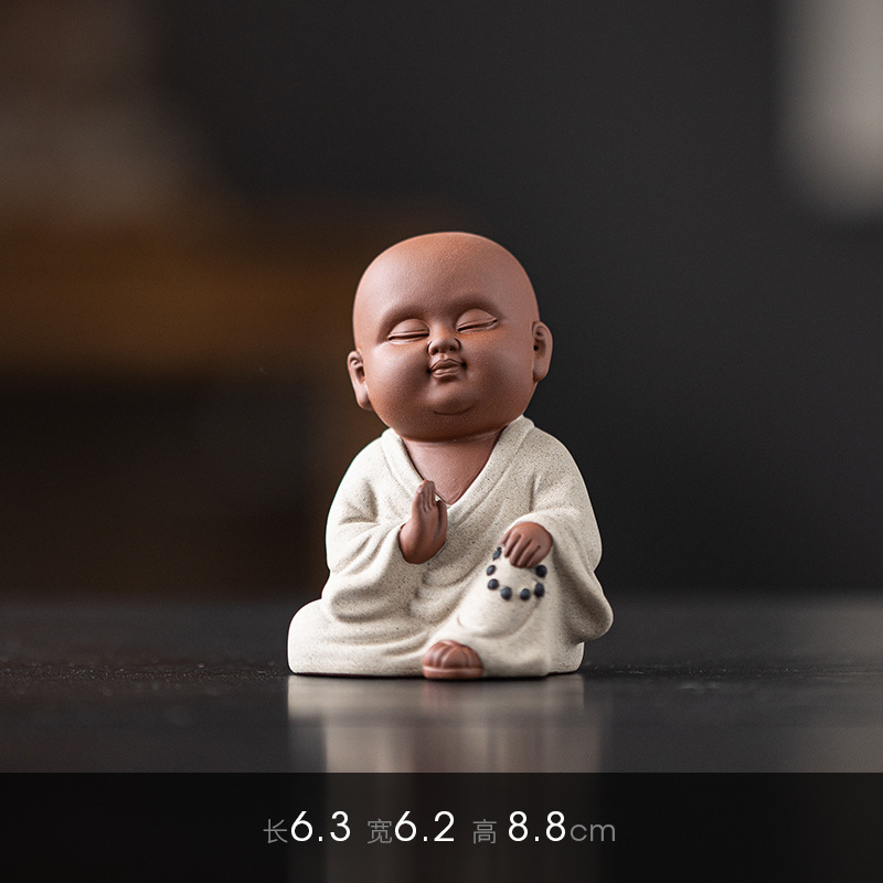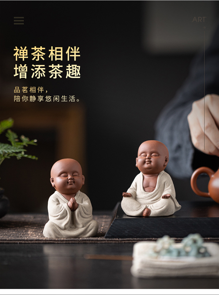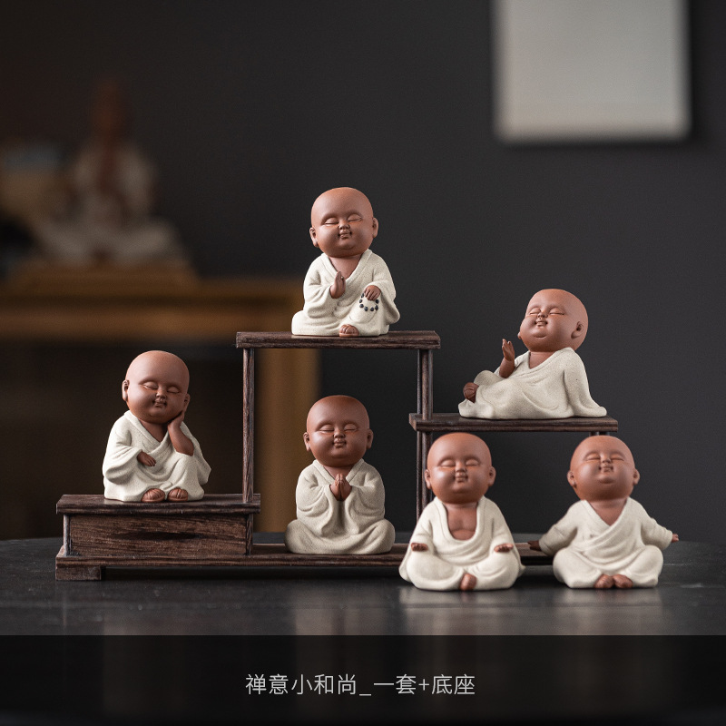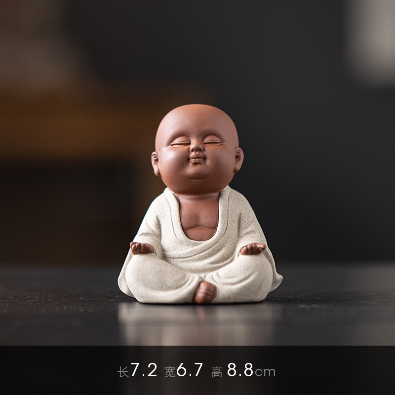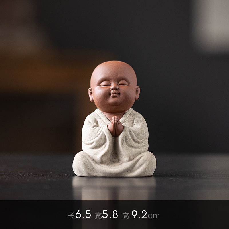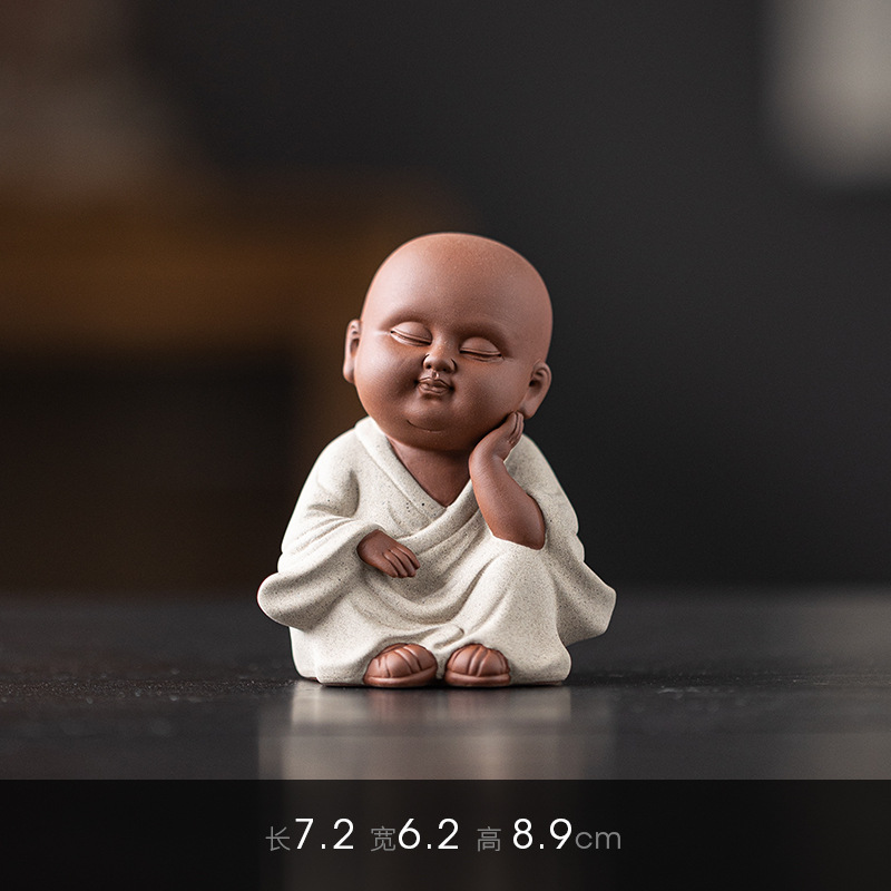 New Chinese Style Purple Sand Small Monk Decoration Zen Buddha Style Small Monk Tea Room Bogu Frame Tea Space Desktop Decoration