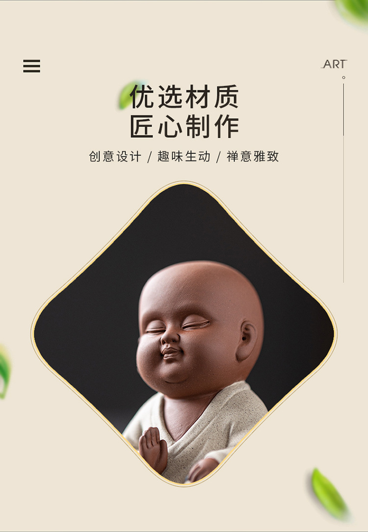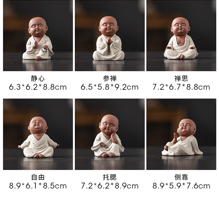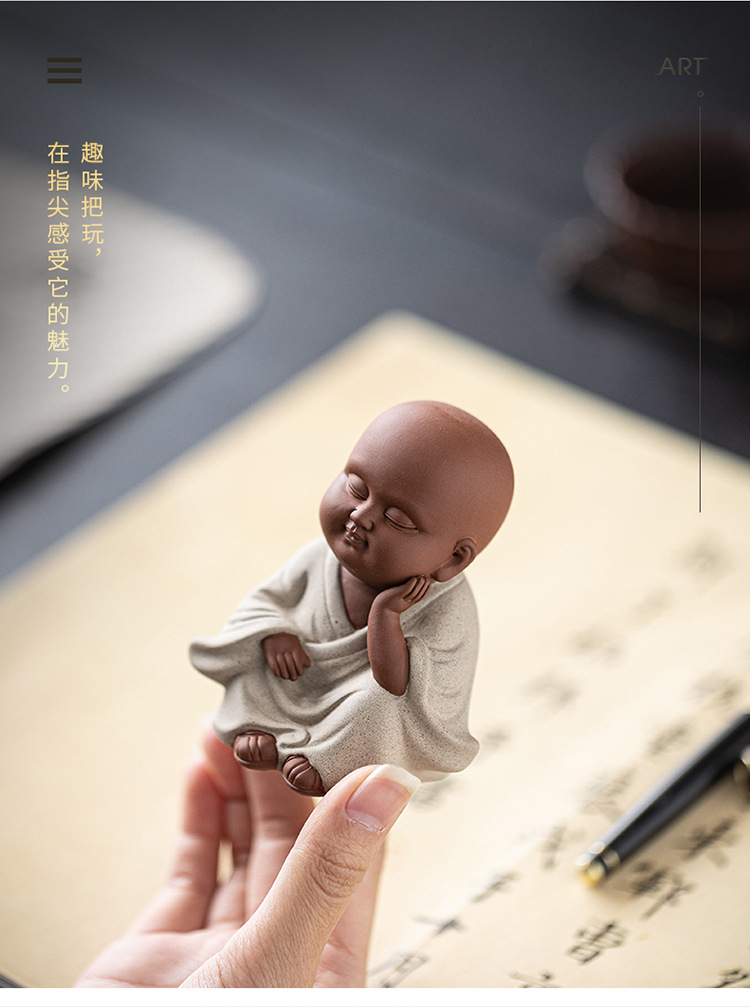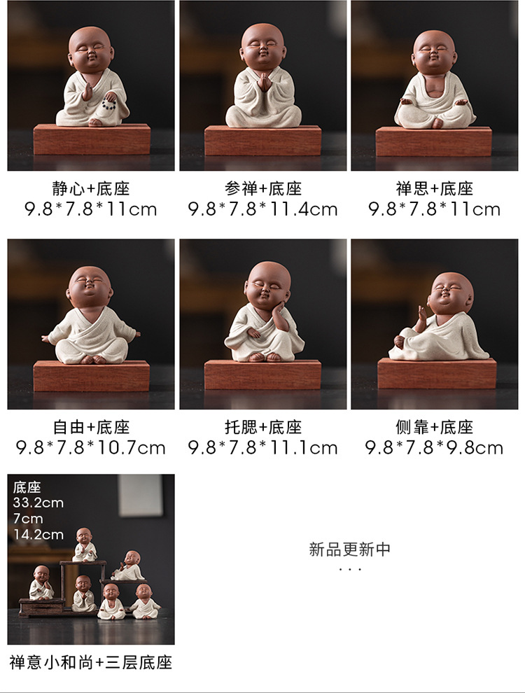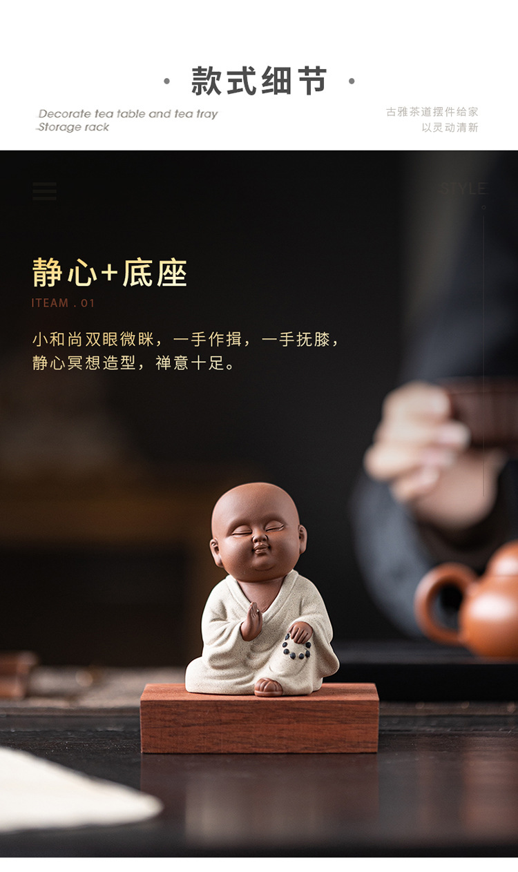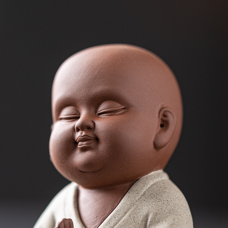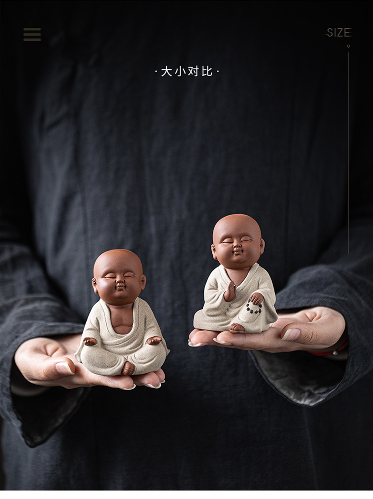 New Chinese Style Purple Sand Small Monk Decoration Zen Buddha Style Small Monk Tea Room Bogu Frame Tea Space Desktop Decoration