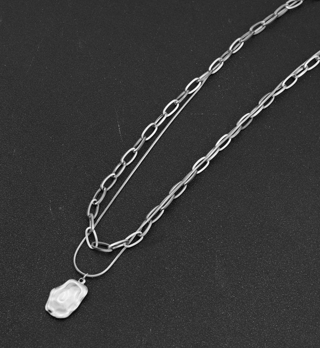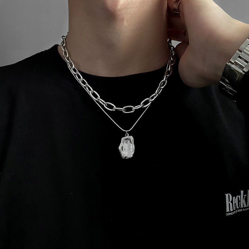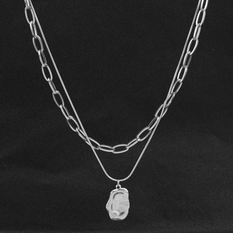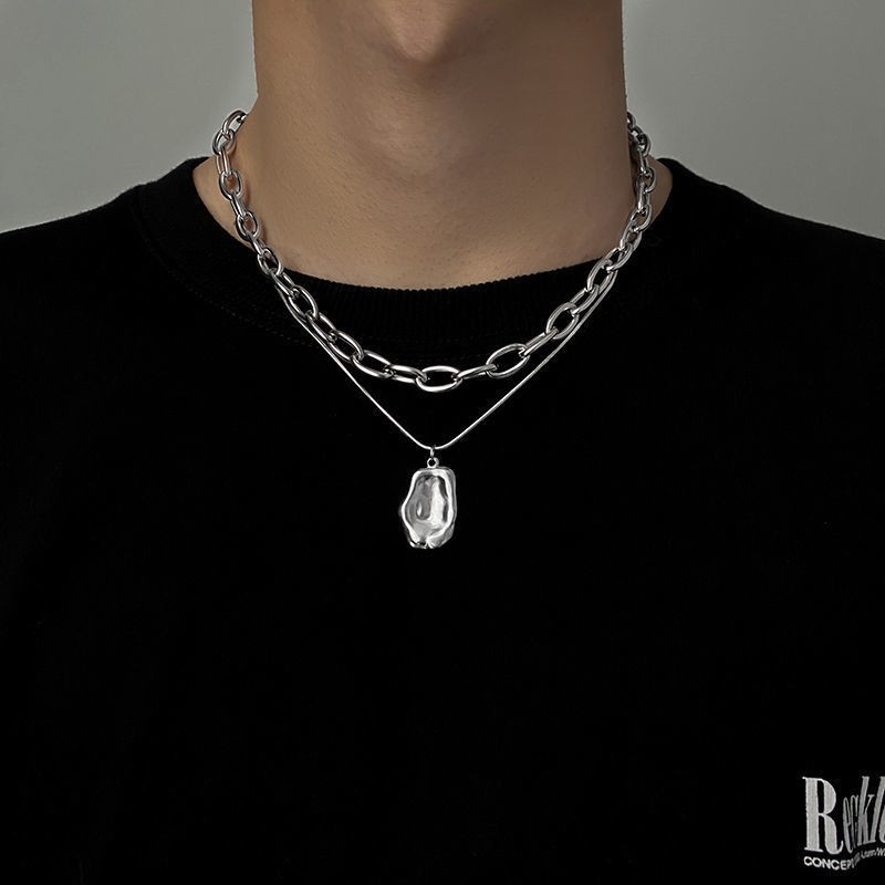 Irregular Square Pendant Double-Layer Stacked Titanium Steel Necklace Men's Ins Trendy Cool Hip-Hop Niche Design Sweat Chain