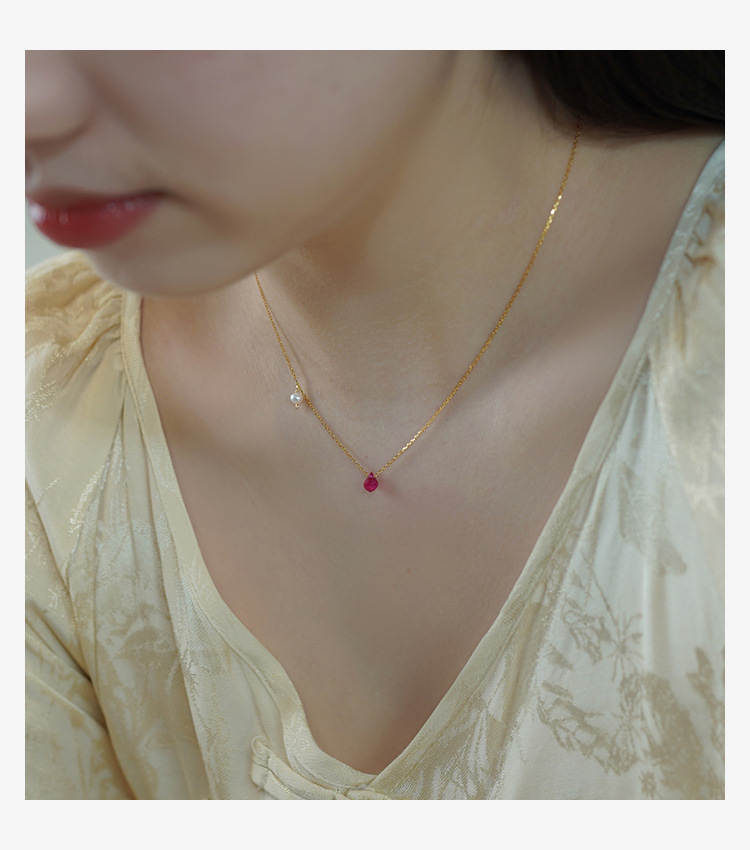 Color: 411111Artificial pigeon blood ruby pearl necklace
