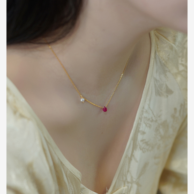 Niche Faux Pigeon Hemoglobin Pearl Necklace Mini Water Drop Pendant Clavicle Chain 925 Silver Sweet 411111