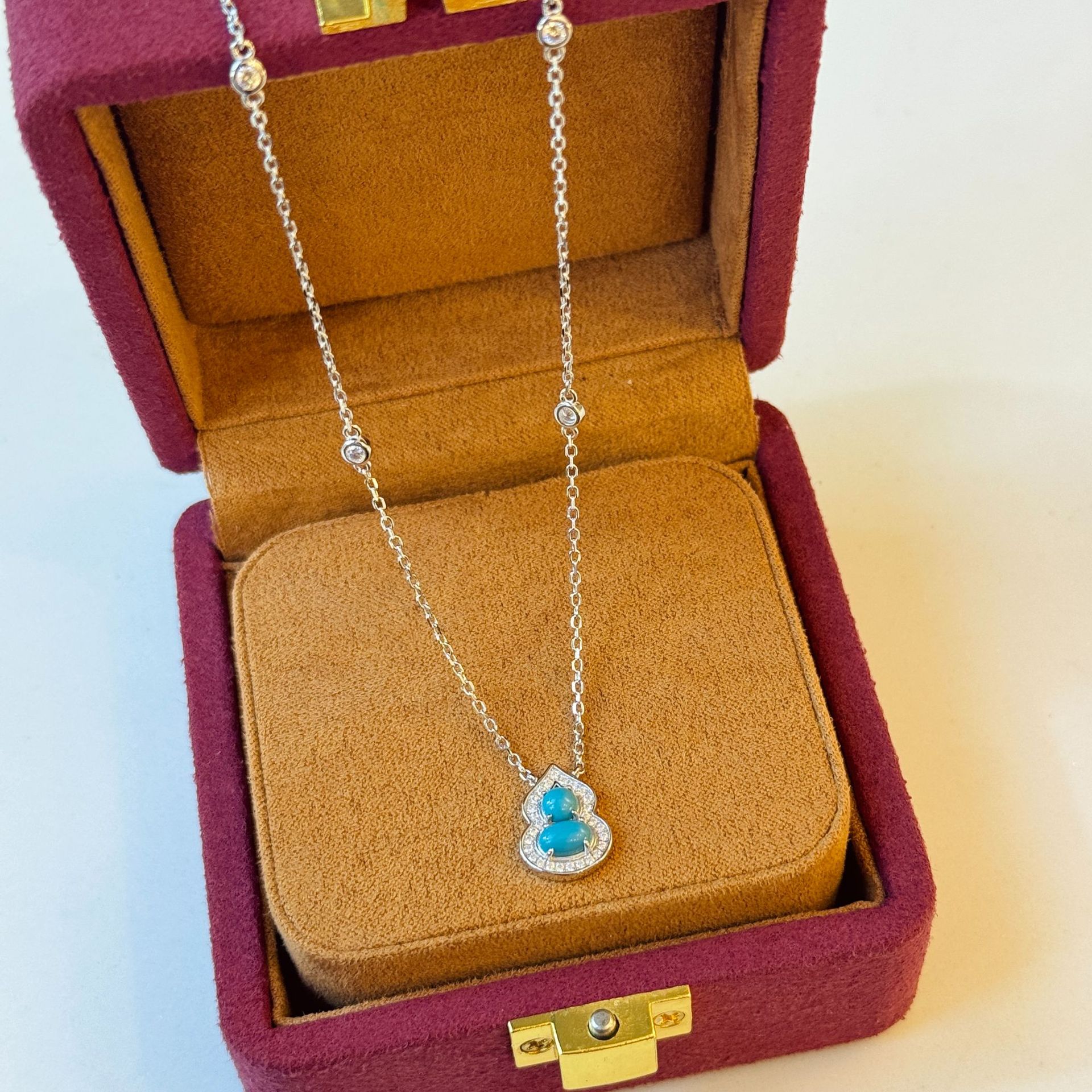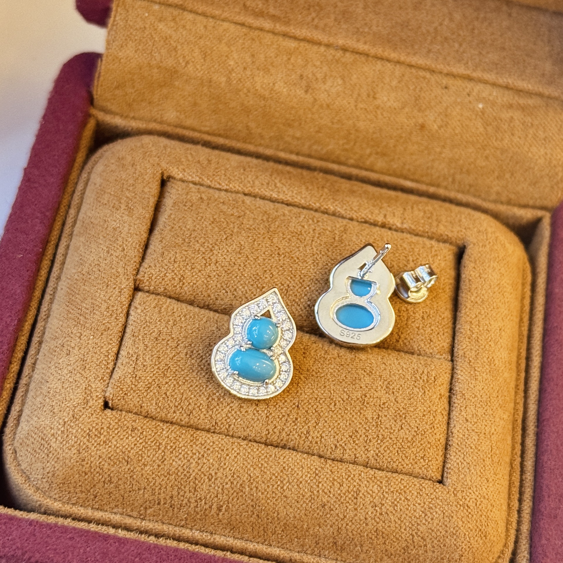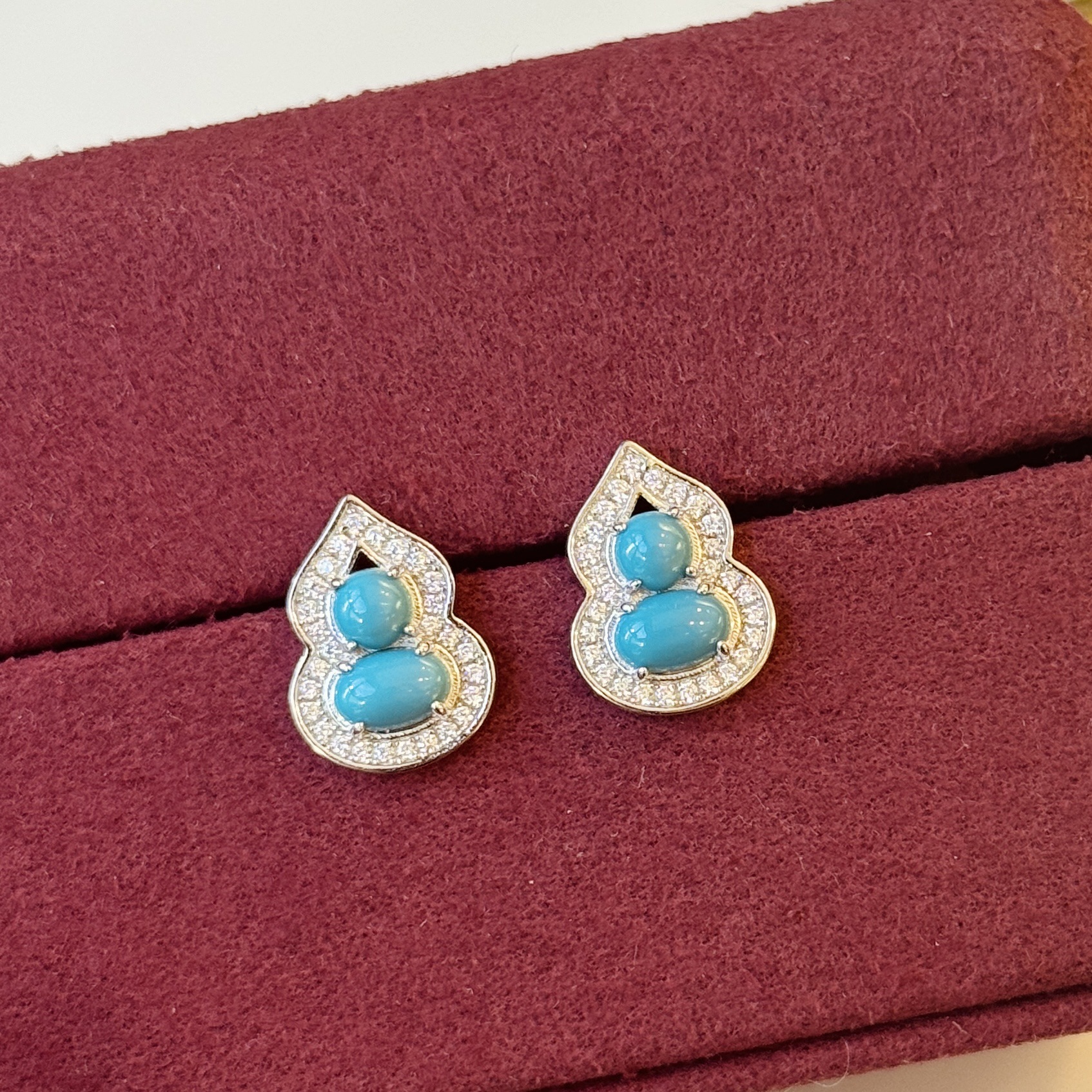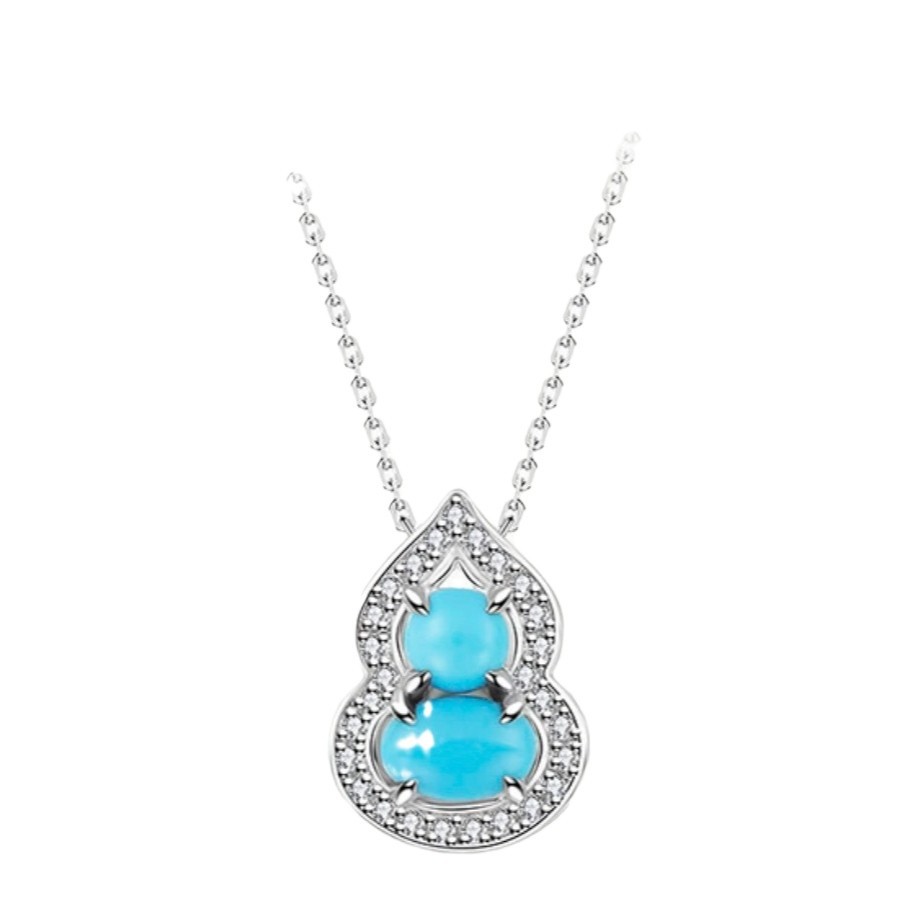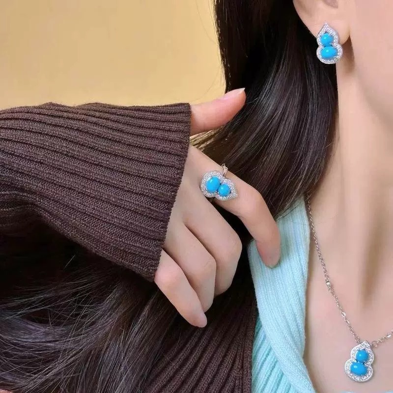 S925 Sterling Silver Turquoise Gourd Earrings Necklace Ring Three-piece Set suit High-grade Fit