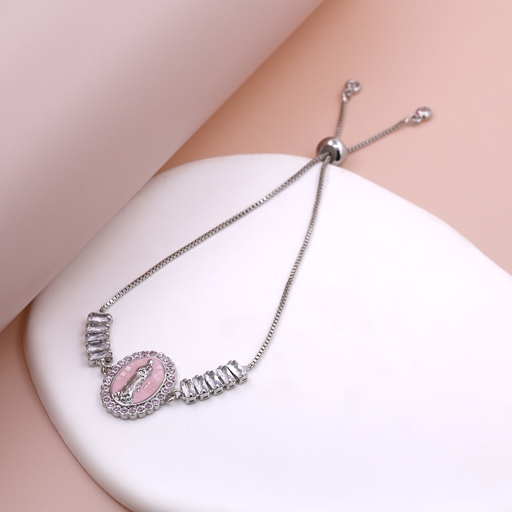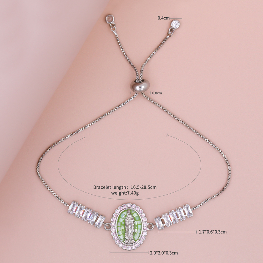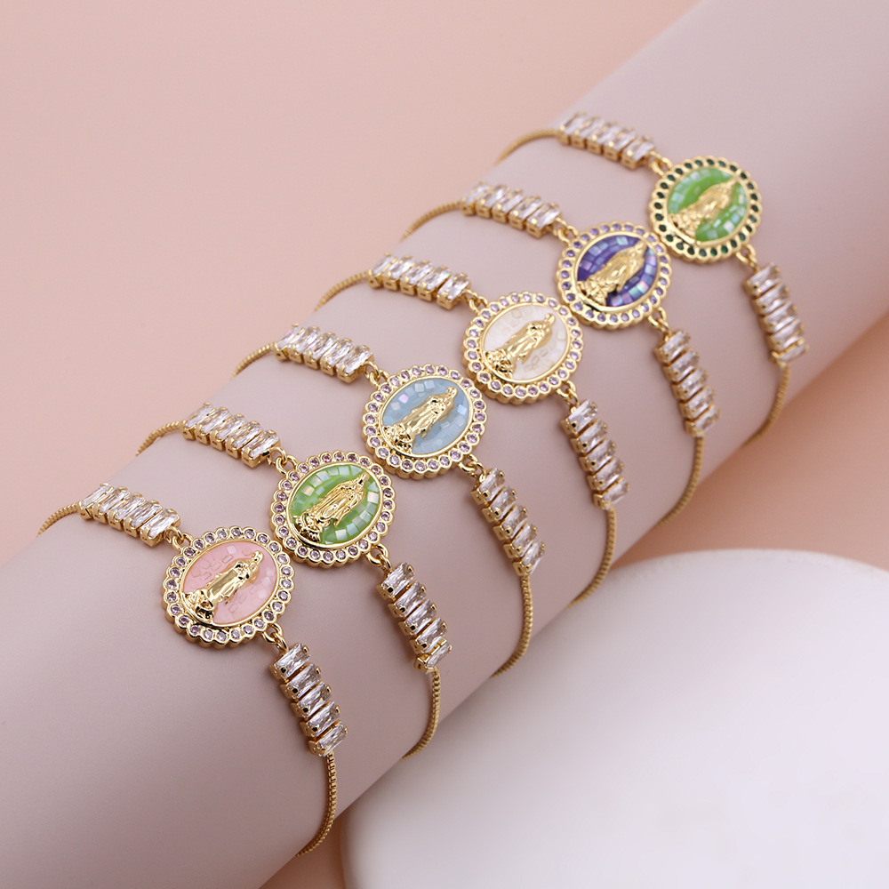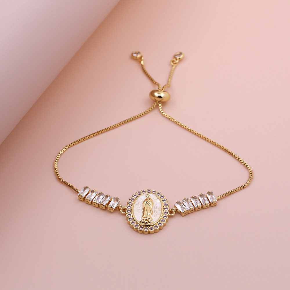 Cubic Zirconia Virgin Mary Shell Adjustable Bracelet 18K Gold Plated Hand Jewelry Religious Charm Jewelry