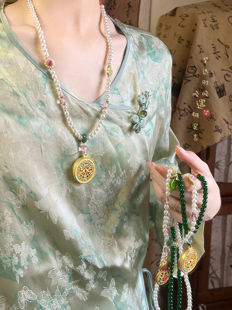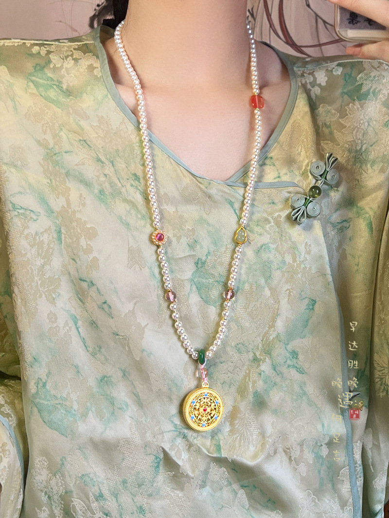 New Chinese Style Retro Round Brand Beaded Necklace Women's Horse Face Skirt Hanfu Cheongsam Woolen Chain Antique Ethnic Style Accessories