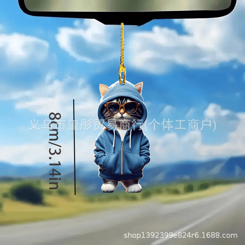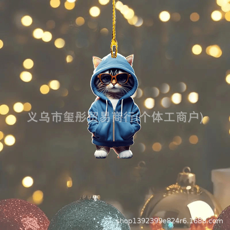 New Christmas Blue Sweatshirt Cat Christmas Tree Decoration Car Acrylic Flat Hanging Pendant 2D Pendant