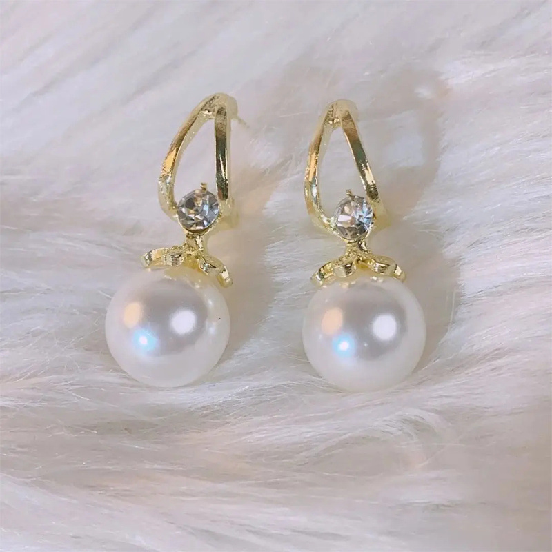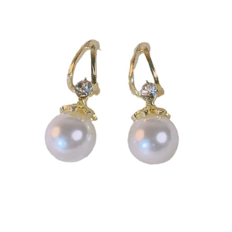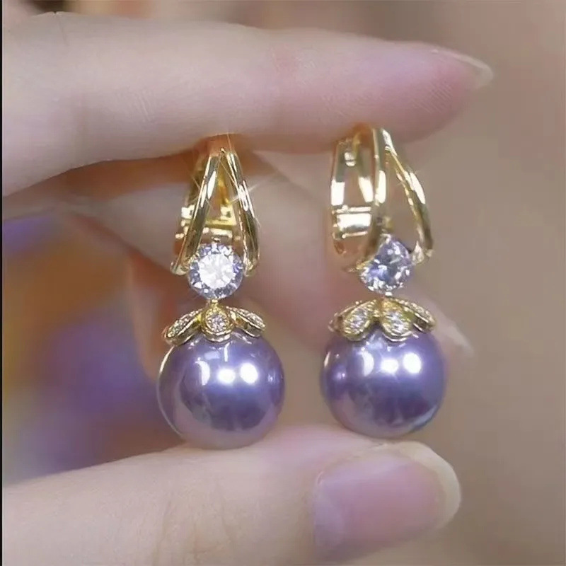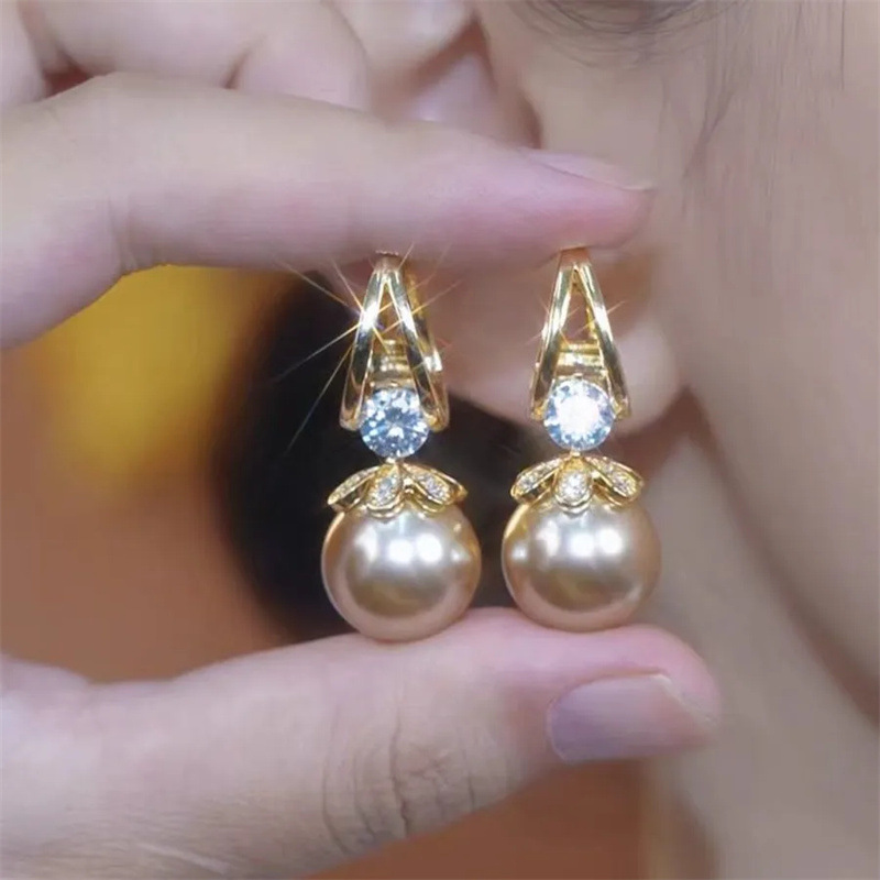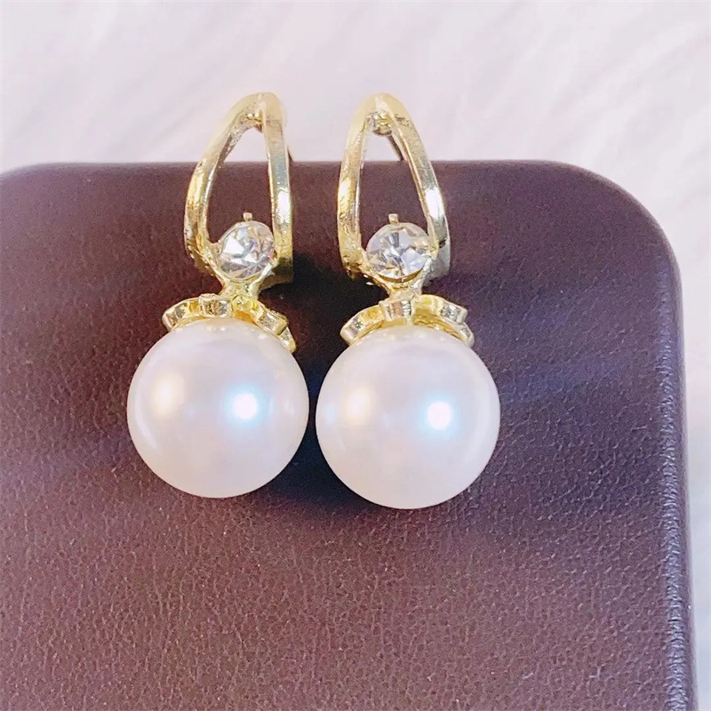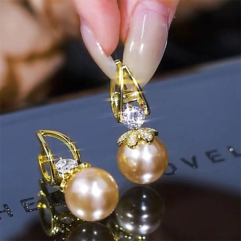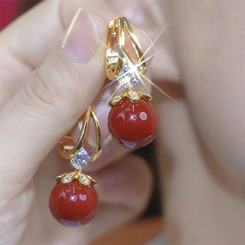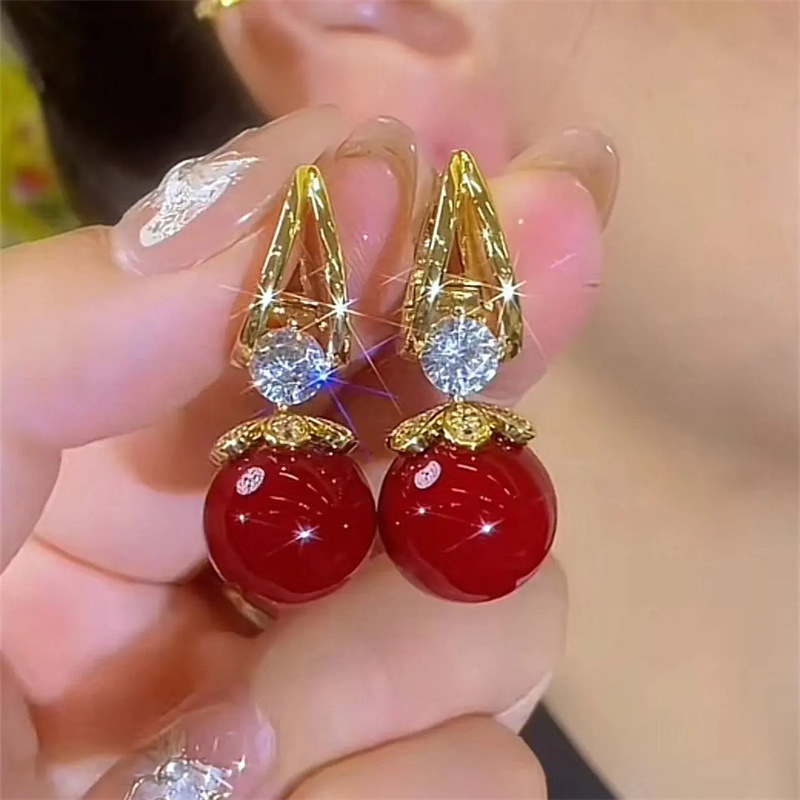 Luxury Elegant Diamond-encrusted Red Pearl Earrings Autumn and Winter Exquisite Elegant Atmospheric All-match Earrings French Earrings