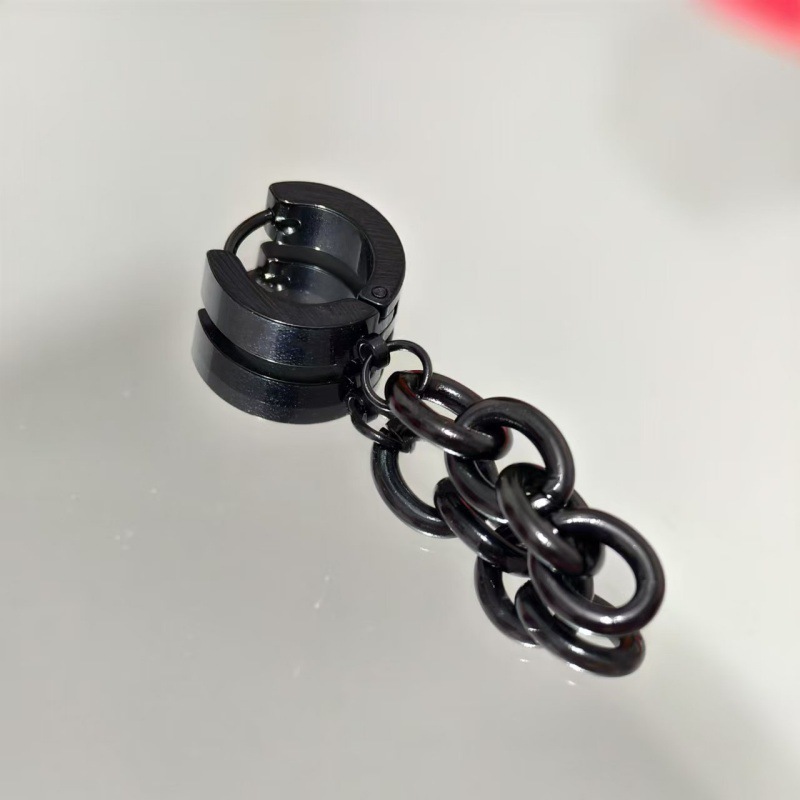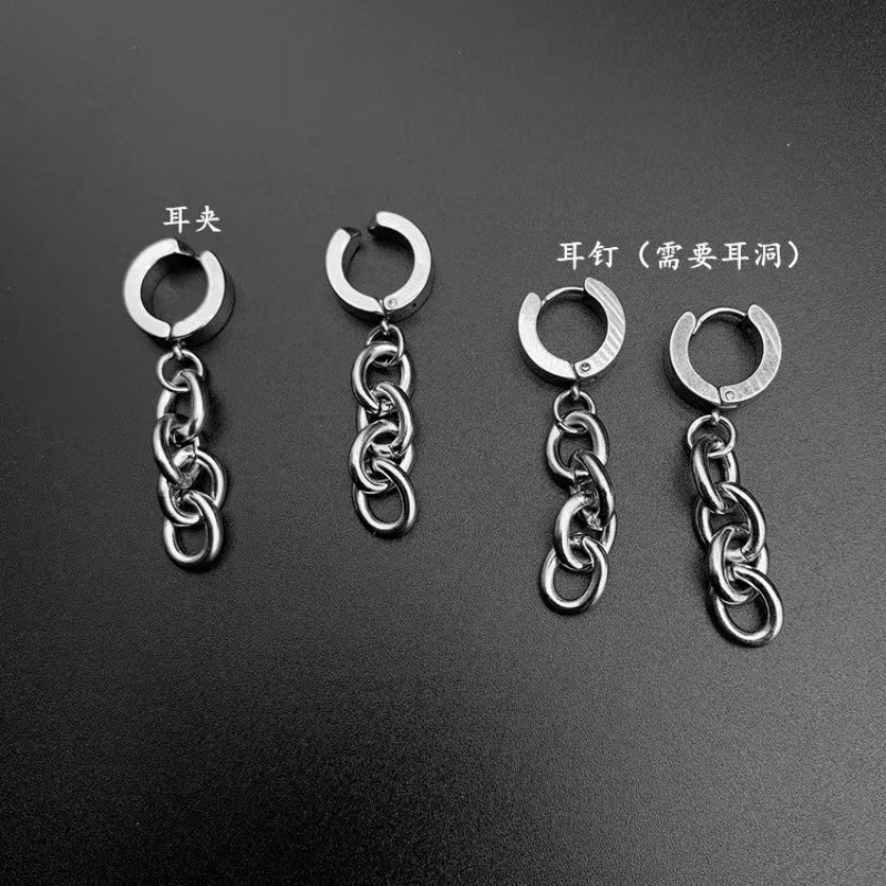 Straight supply titanium steel earrings chain men's trendy hip-hop without earholes European and American trendy women's earrings simple cold style earrings
