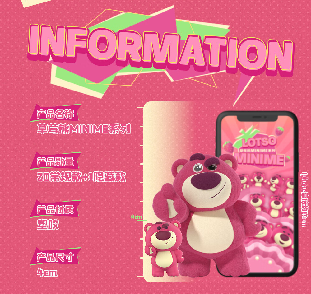 【商品名称】p-203草莓熊Minime系列盲盒【商品材质】PVC