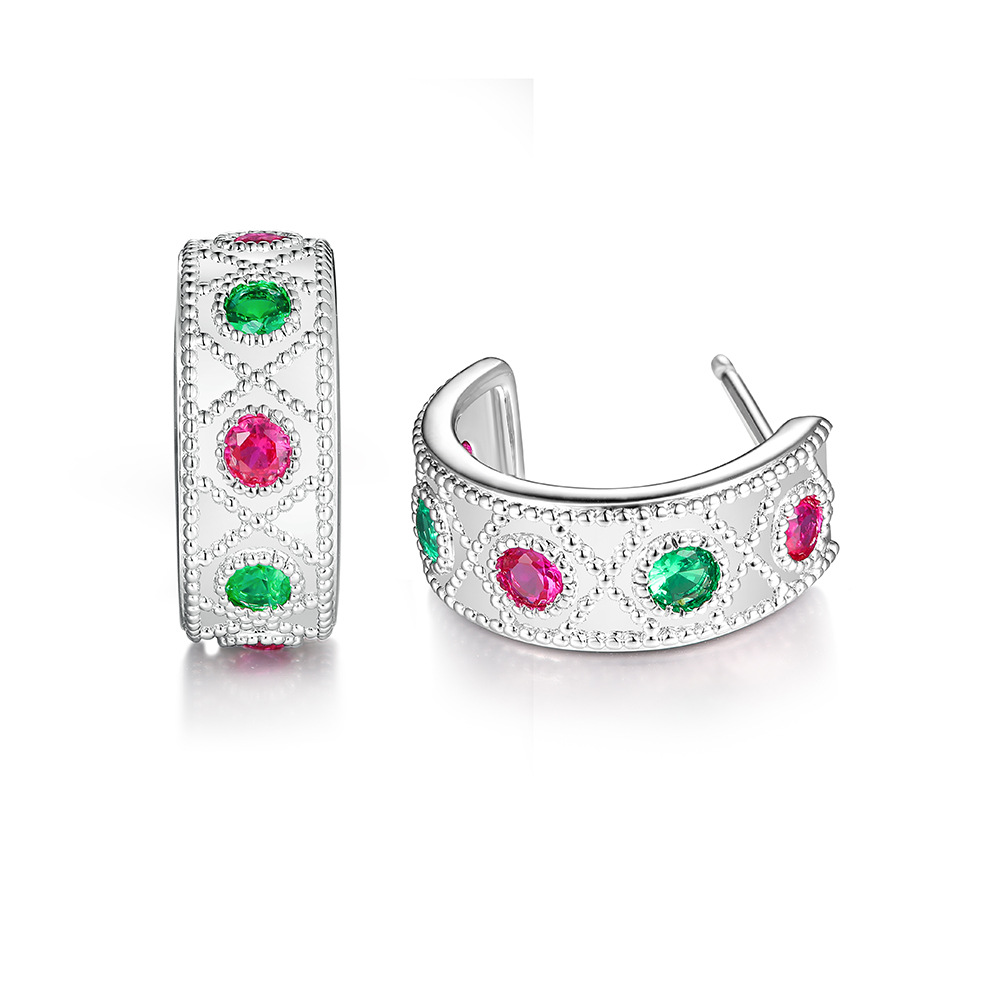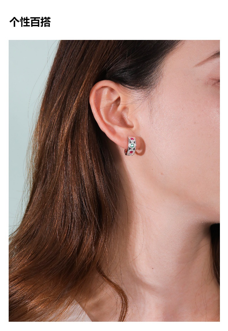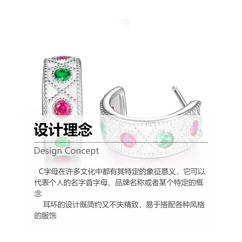 Cross-border hot new laboratory cultivation caibao C ring half ring earrings s925 silver platinum ladies earrings