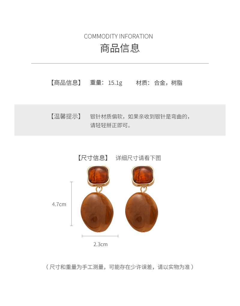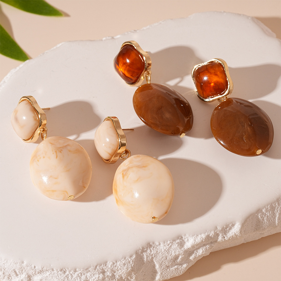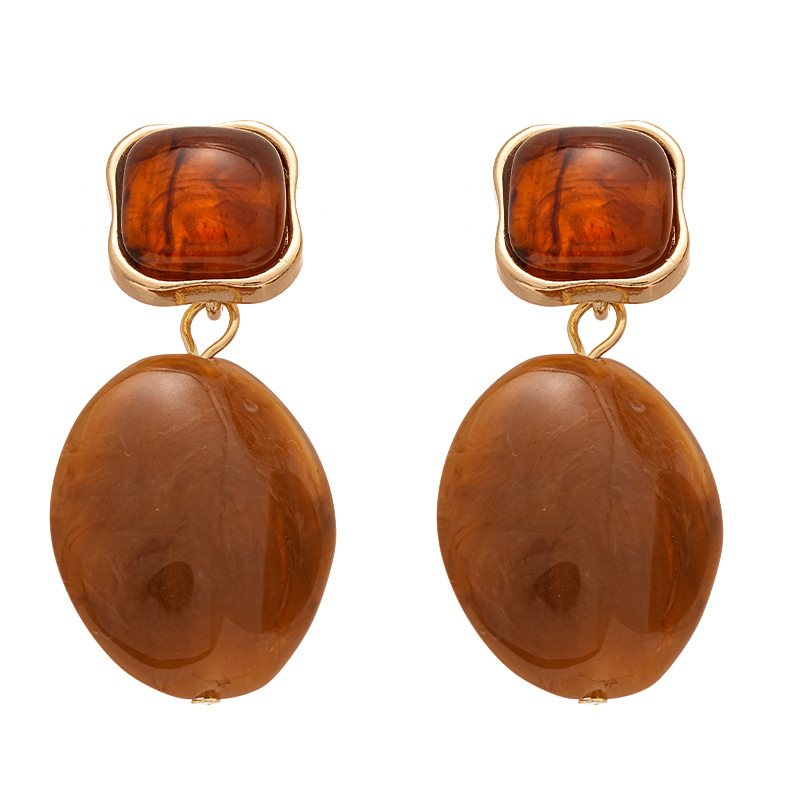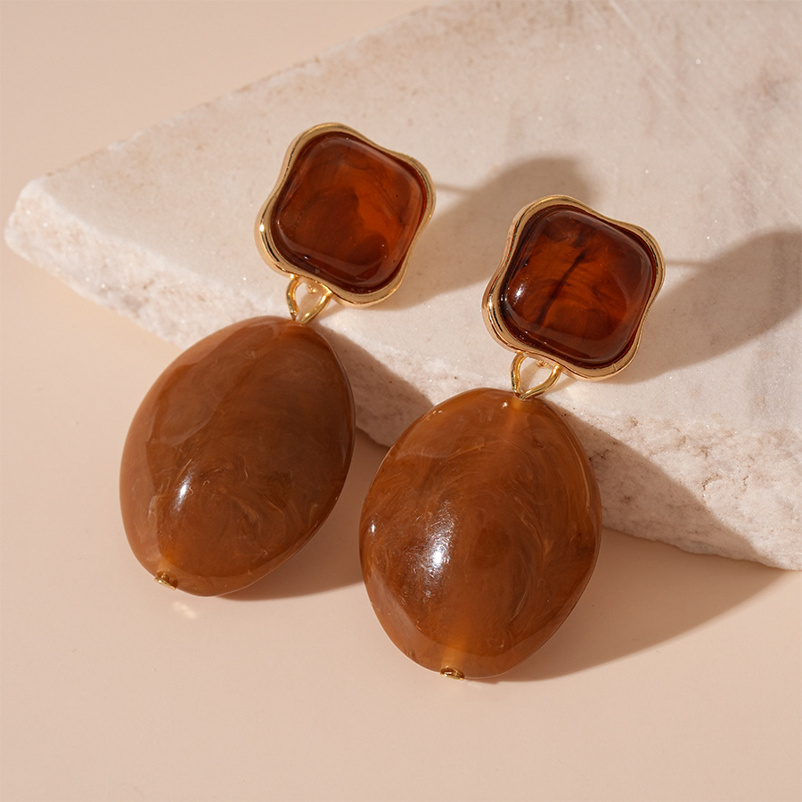 Color: Silver Needle-brown Resin Geometric Drop Earrings