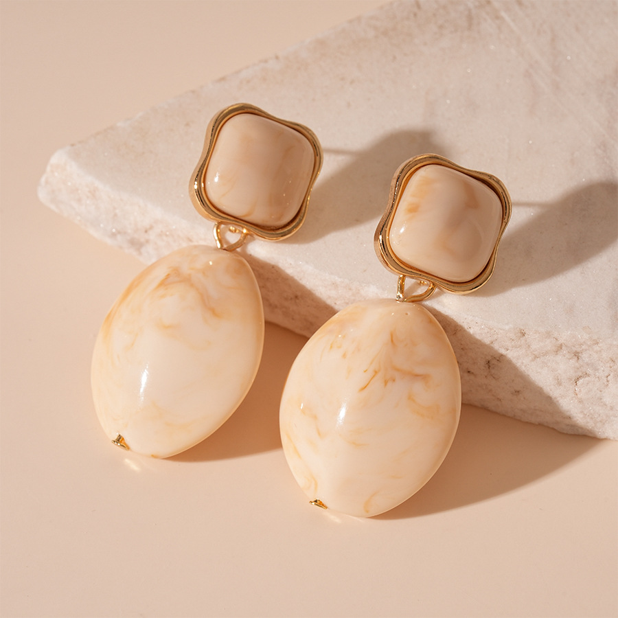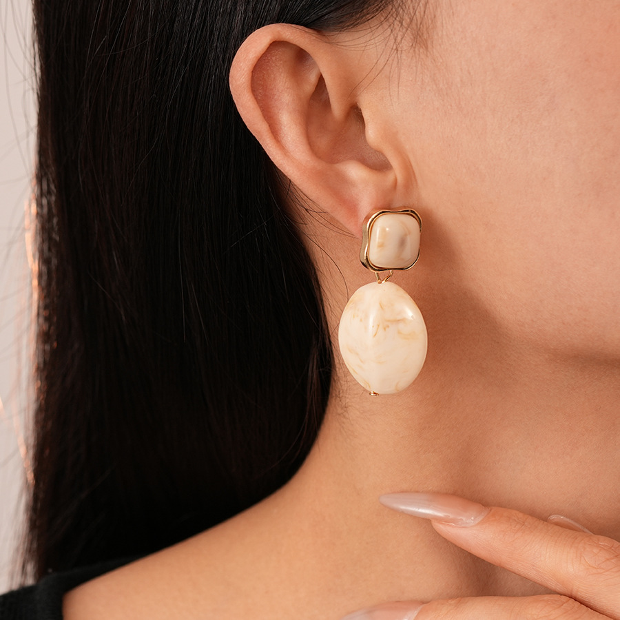 Color: Silver Needle-creamy-white Resin Geometric Drop Earrings