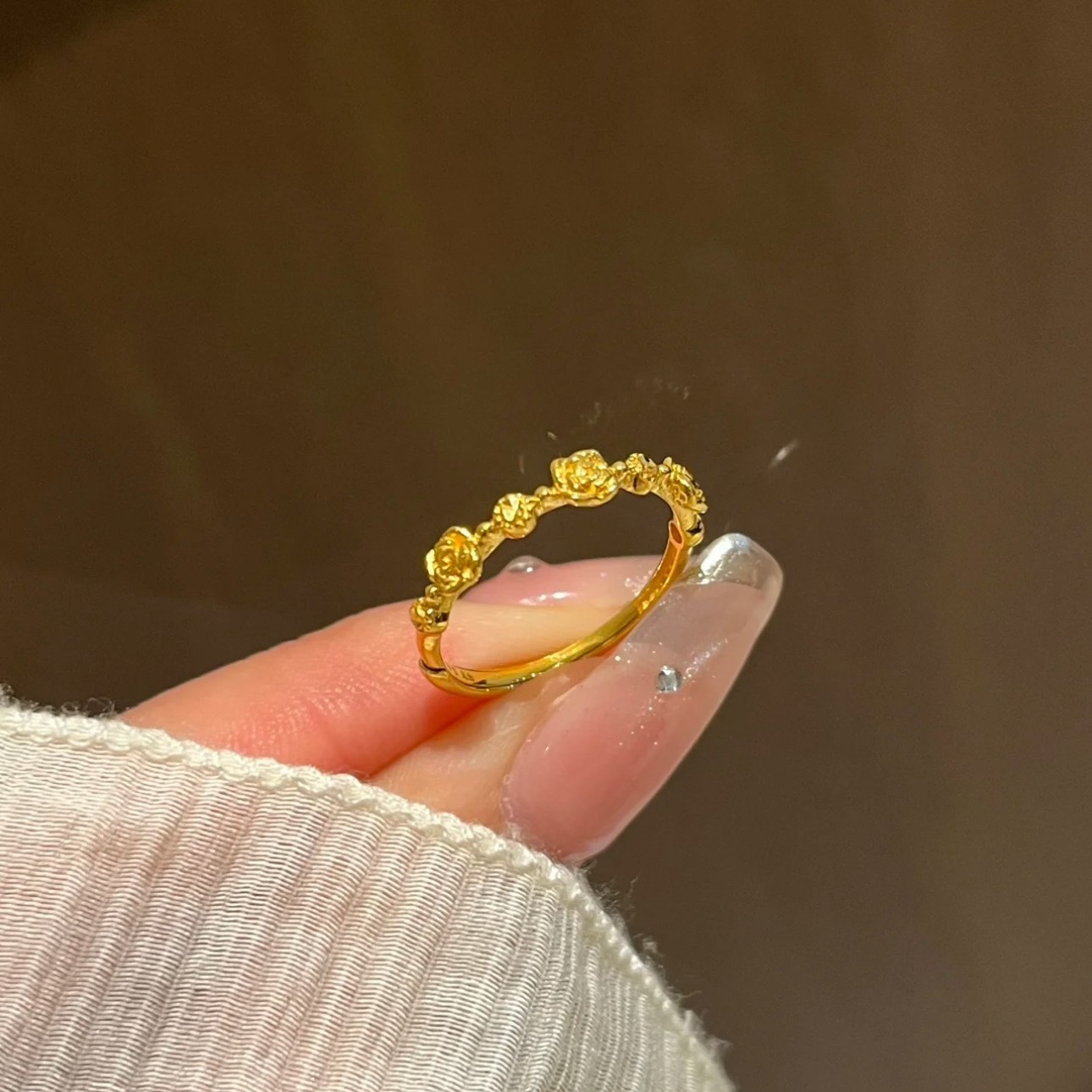 New Golden Rose Ring Women's Light Luxury Niche High-end Simple All-match Fashion Design Adjustable Size