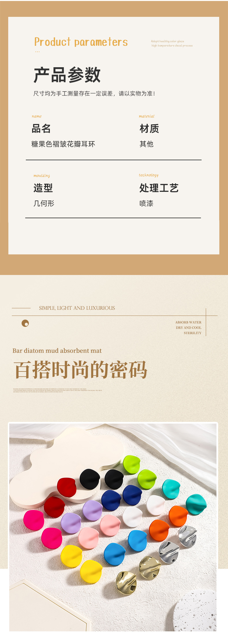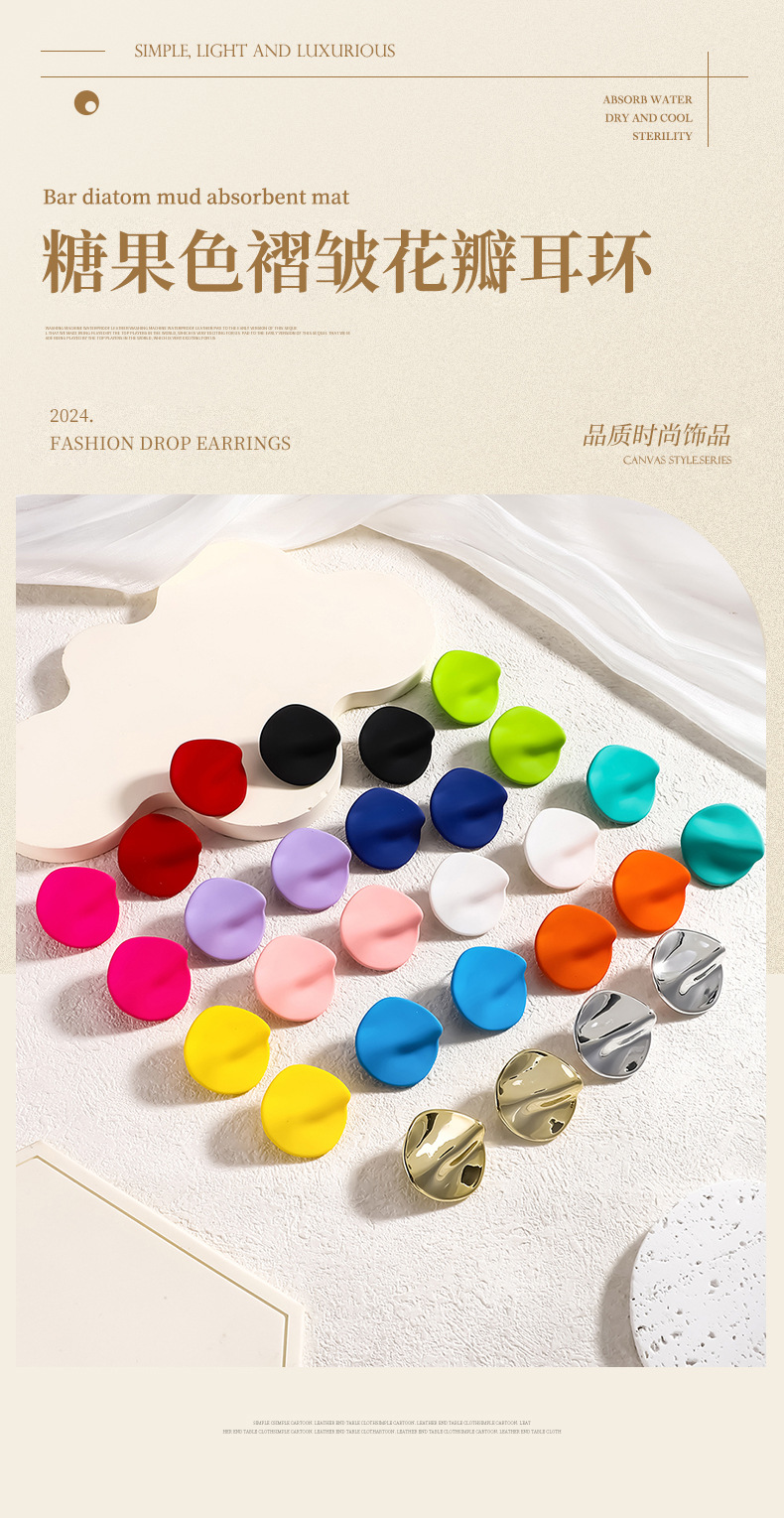 Refreshing Simple Earrings Candy Color Irregular Pleated Petal Acrylic Earrings Fashionable Earrings for Women